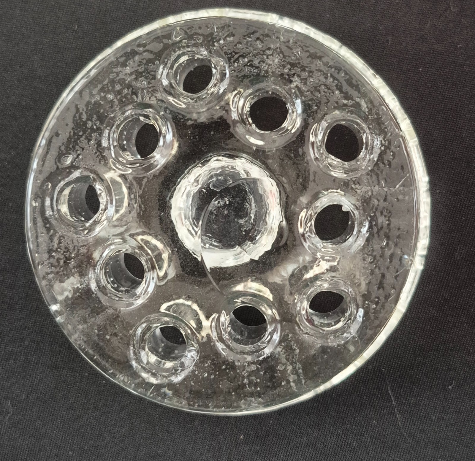 Vintage 10 Hole Clear Glass Flower Frog And Candle Holder Floral Arrangement