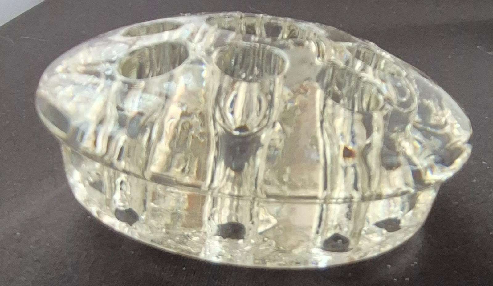 как выглядит Vintage 10 Hole Clear Glass Flower Frog And Candle Holder Floral Arrangement фото