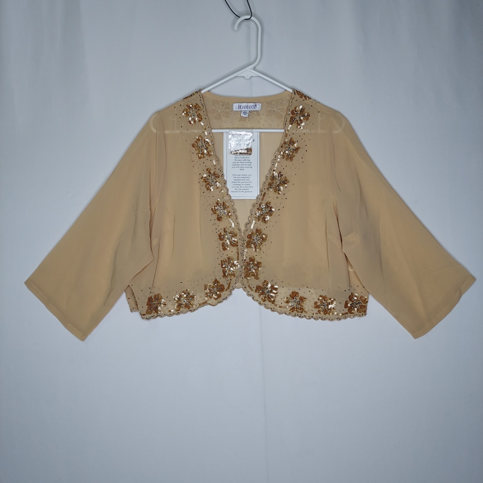 как выглядит Roamans Dress Jacket Set 18W Sequin Chiffon Beige Mother Of Bride Evening Guest фото