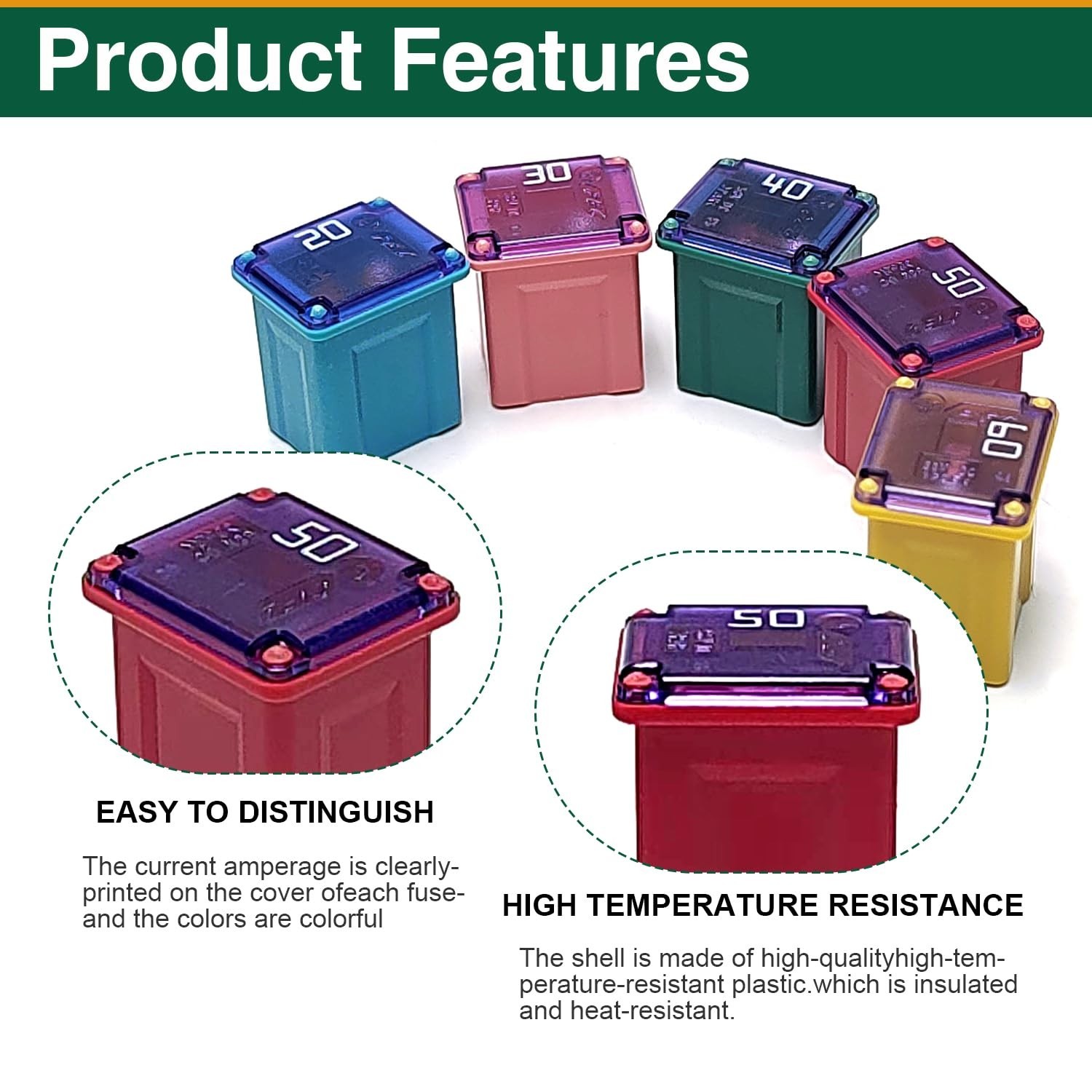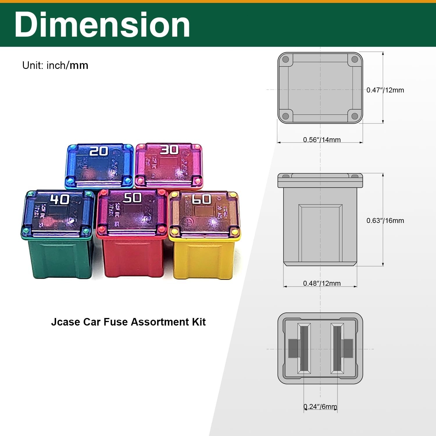 10Pcs Jcase Fuse Kit Car Fuses Assortment Kit Low Profile Box Shaped Automotive
