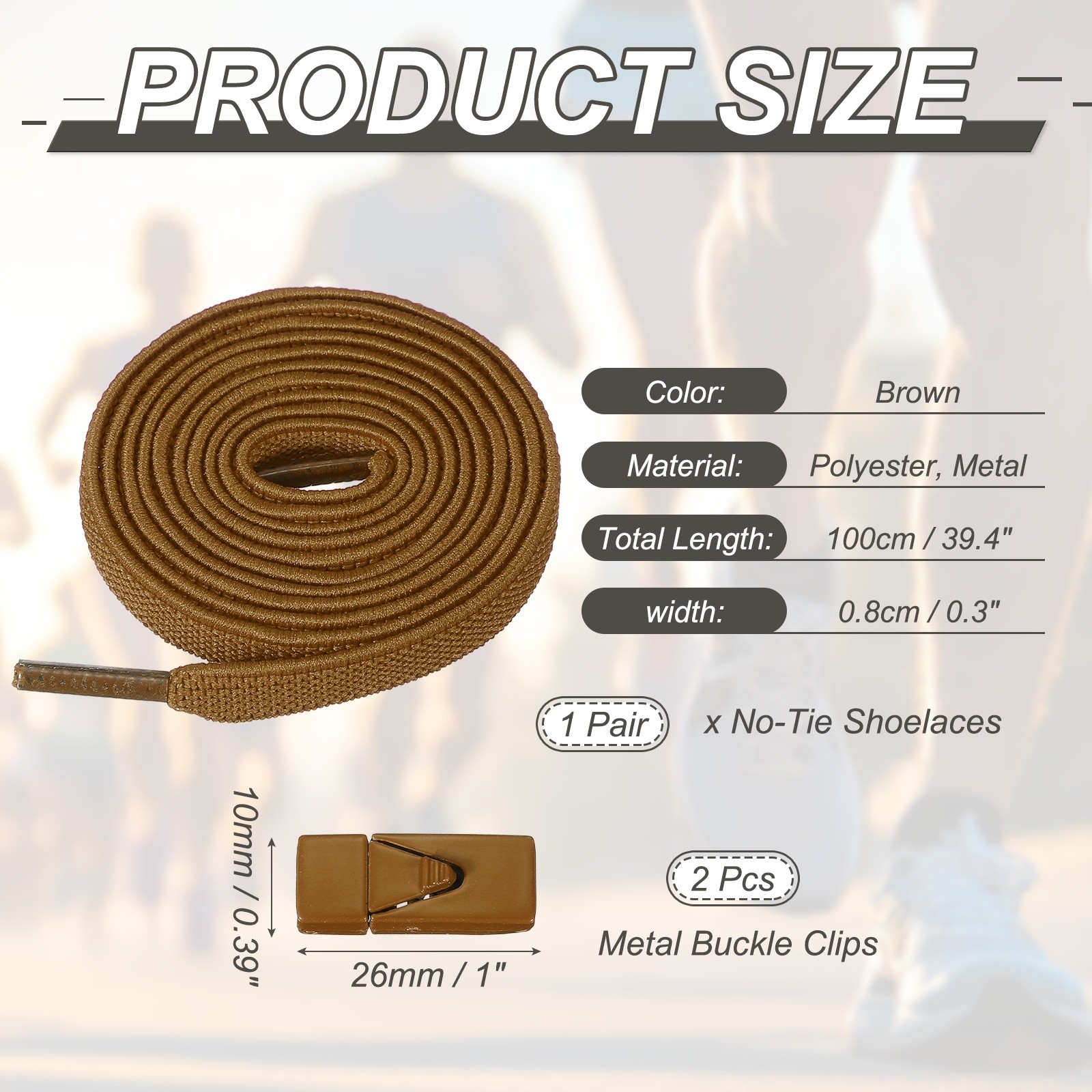 No Tie Shoelaces with 2 Metal Triangle Buckle Clips, 1Pair Brown