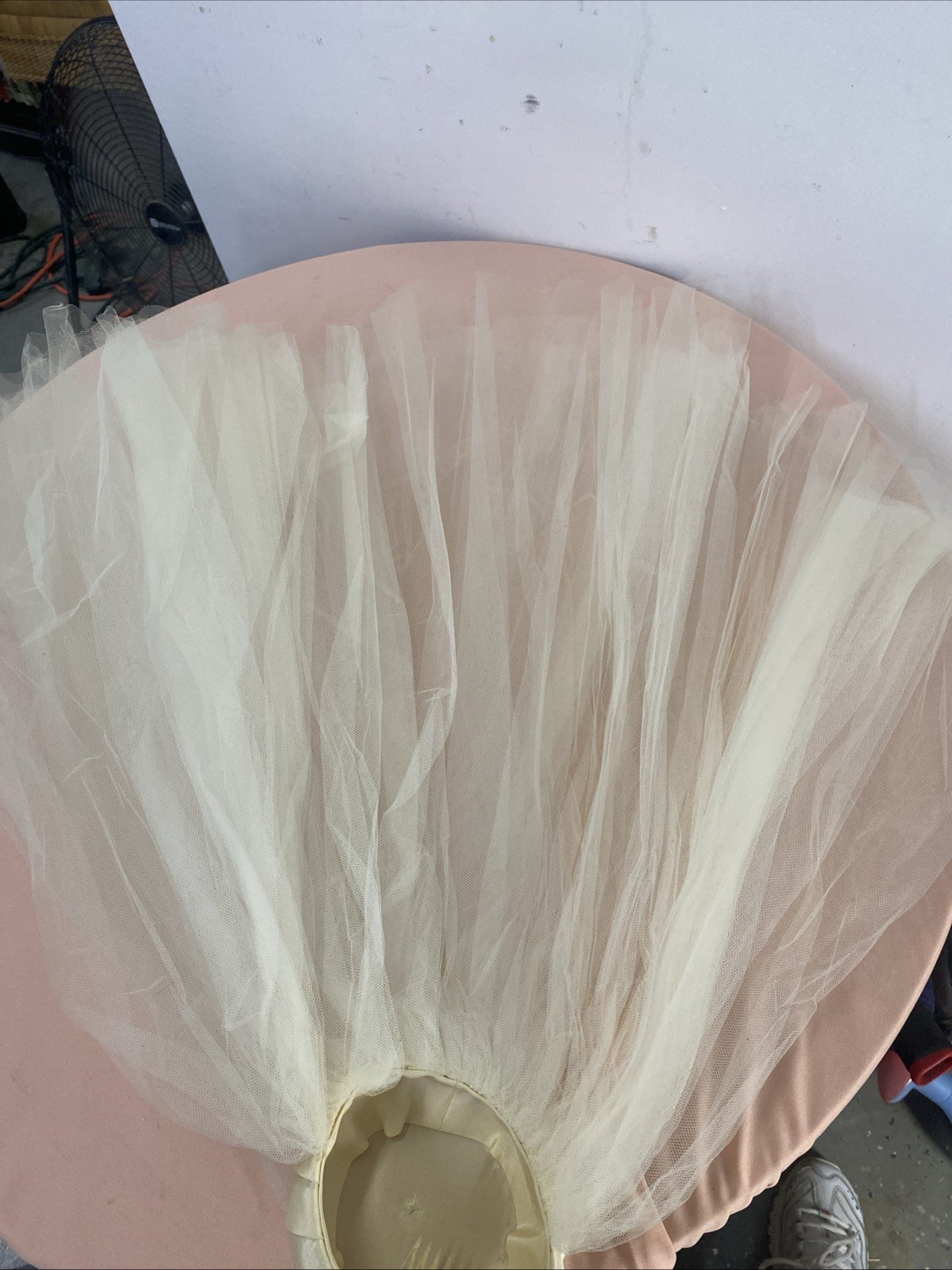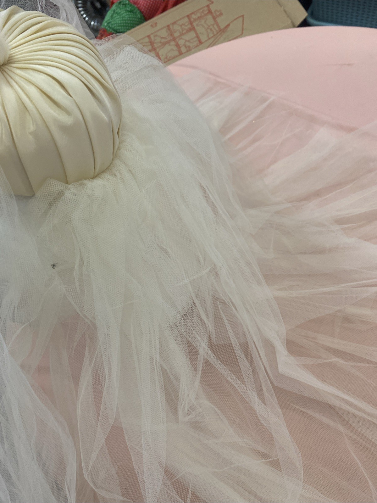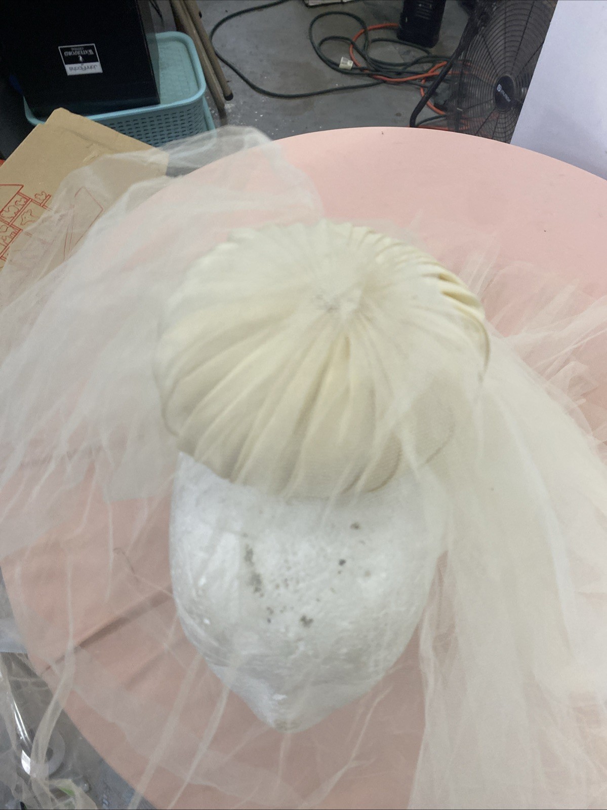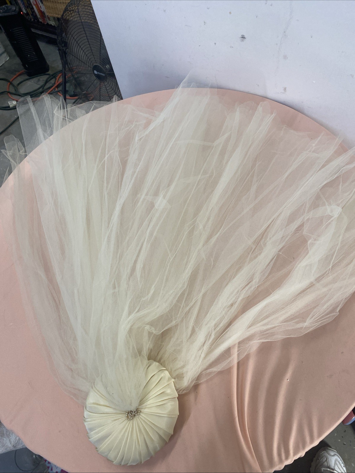 как выглядит Vintage Short Bridal Veil Ivory -Double Veil With Small Satin Hat-1960-1970 фото