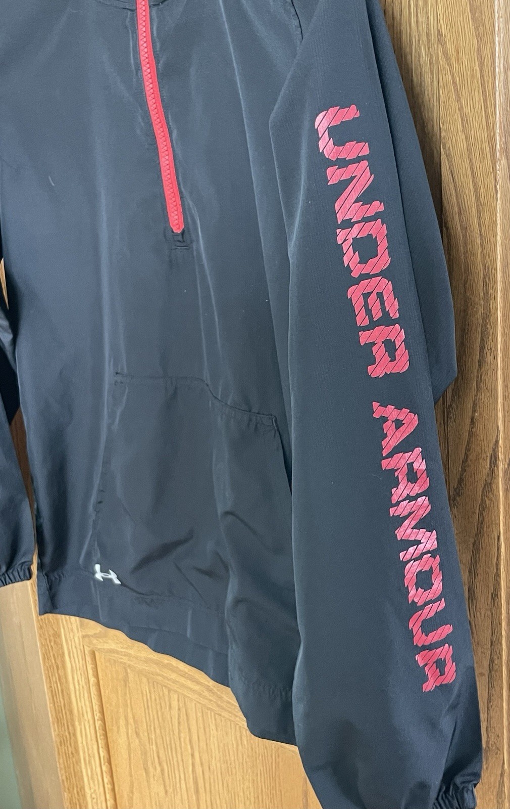 как выглядит Under Armour Youth Large Black Red 1/2 Zip Windbreaker фото