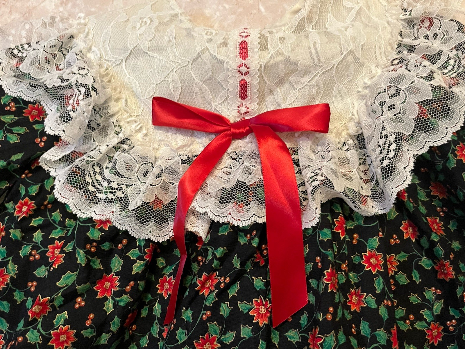 как выглядит Vintage Girls Christmas Dress Sz 4 NEW Lace Bib Long Sleeve Holiday Poinsettia фото
