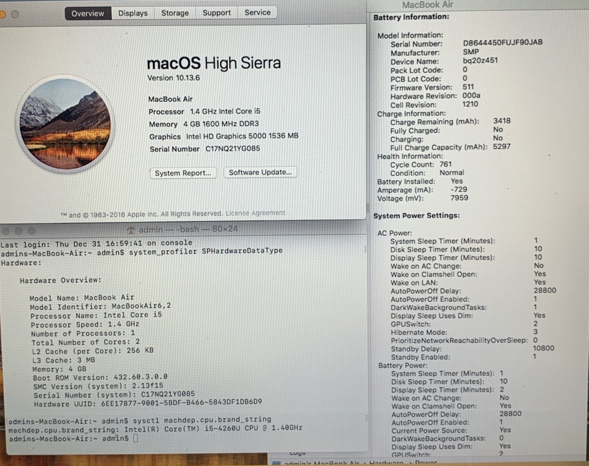 MacBook Air 13 2014 1.4GHz i5-4260U 4GB RAM 128GB SSD MacOS High Sierra