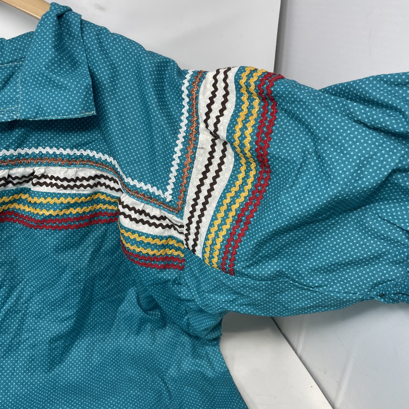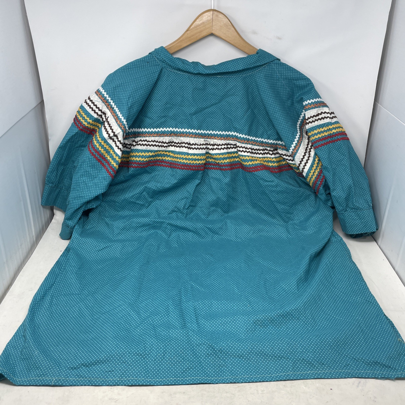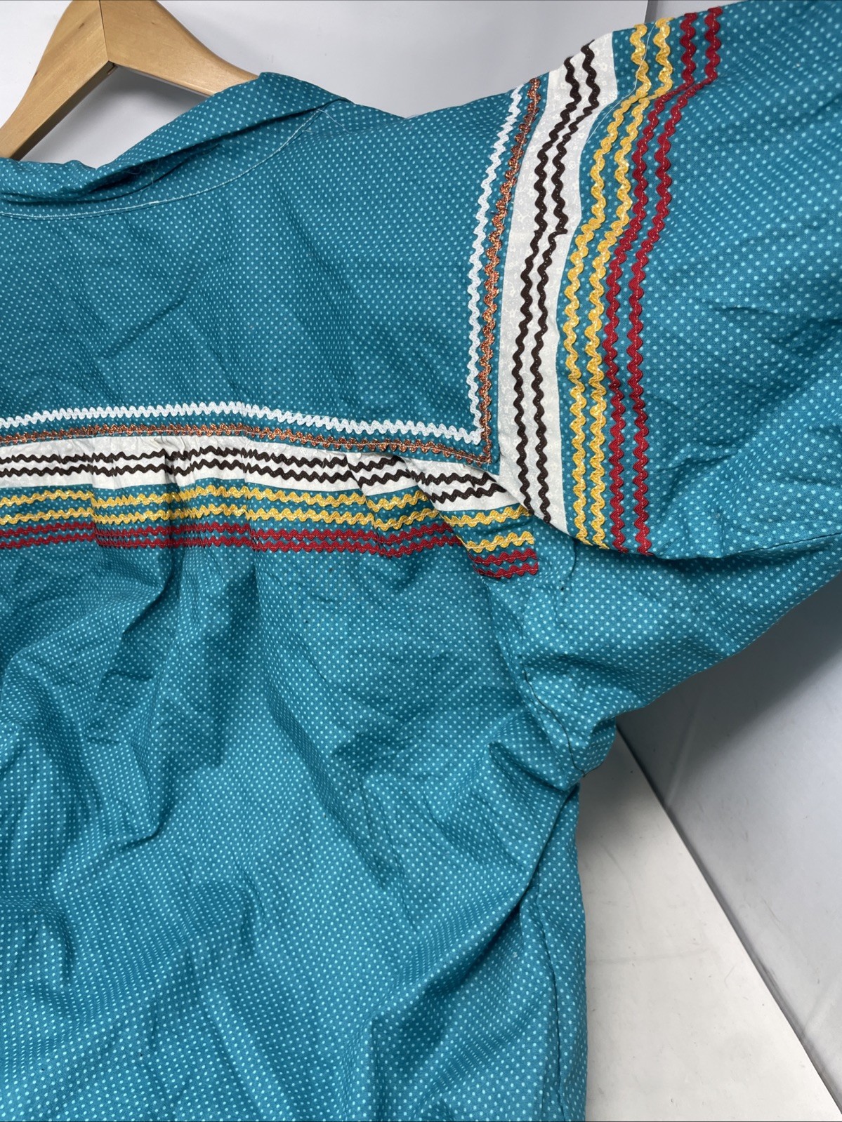 как выглядит Turquoise Blue Cotton Pullover Handwoven Embroidered Native American Top 5 фото