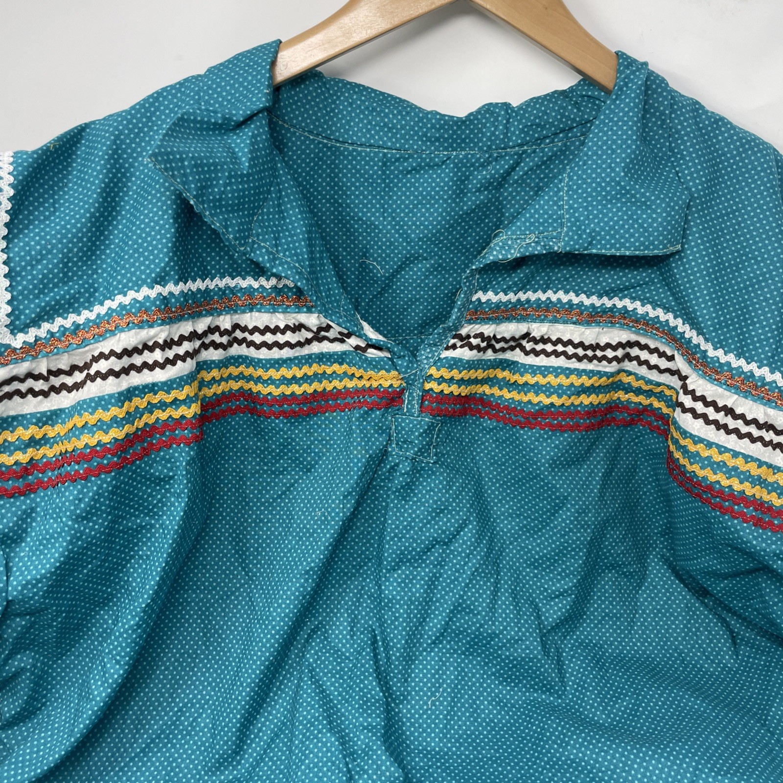 Turquoise Blue Cotton Pullover Handwoven Embroidered Native American Top 5