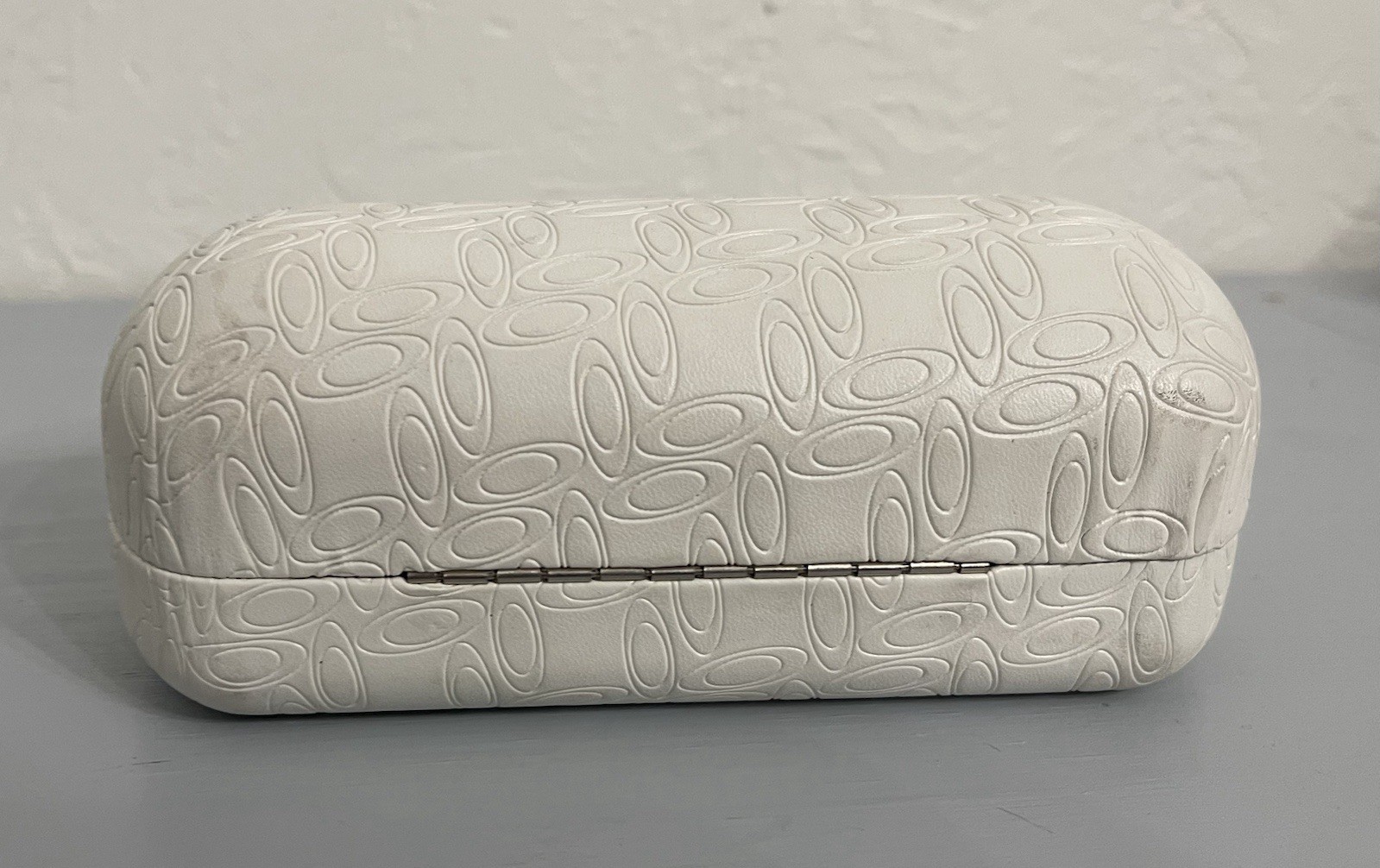 как выглядит OAKLEY SIGNATURE "O" SUNGLASSES CLAM SHELL TRAVEL HARD WHITE STORAGE CASE ONLY фото