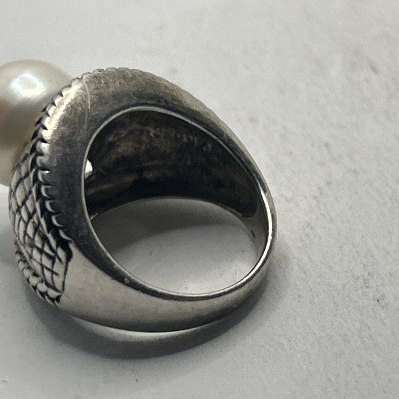 как выглядит Pearl Ring , 925 Sterling Silver , White Pearl Band Ring , Handmade Ring size 6 фото