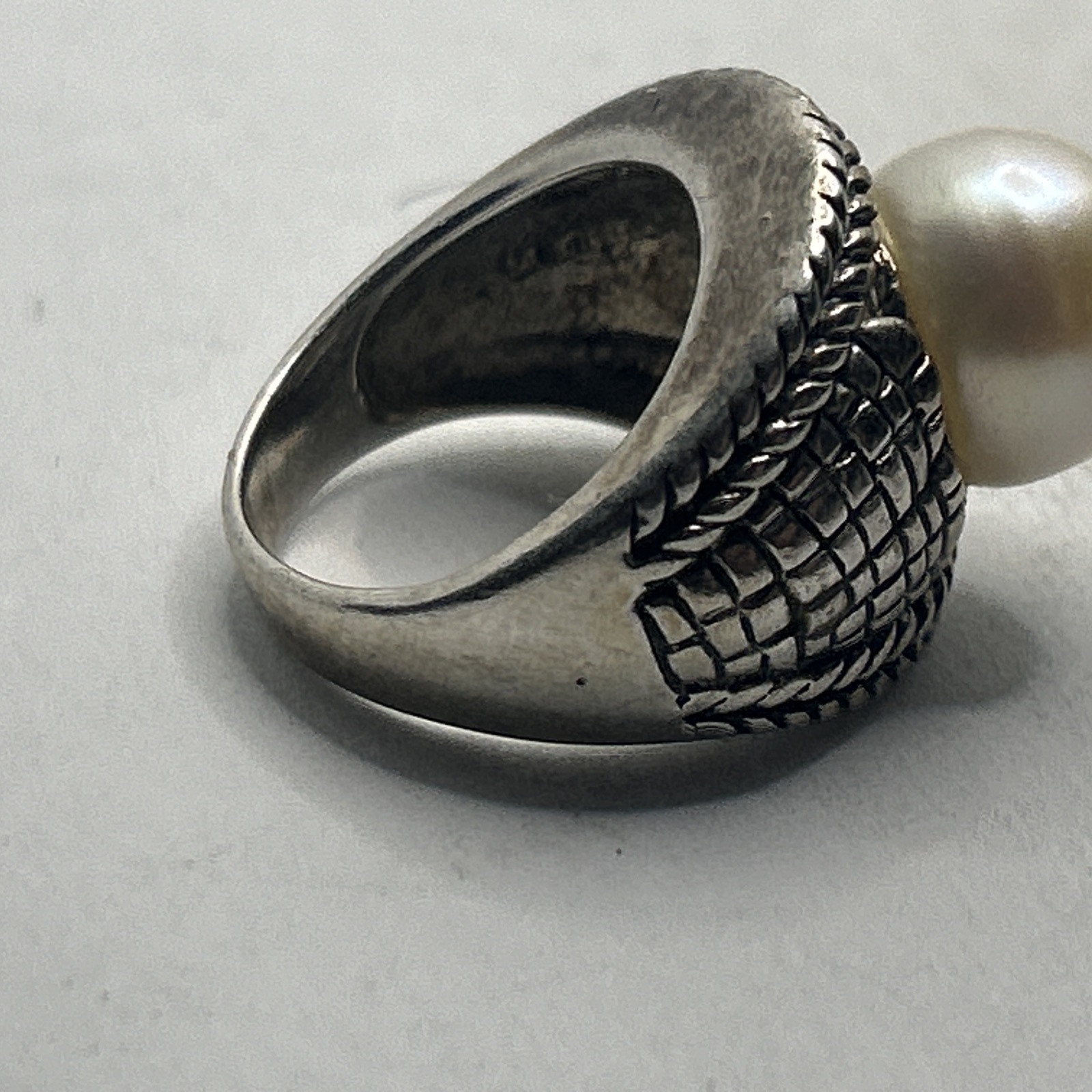 Pearl Ring , 925 Sterling Silver , White Pearl Band Ring , Handmade Ring size 6
