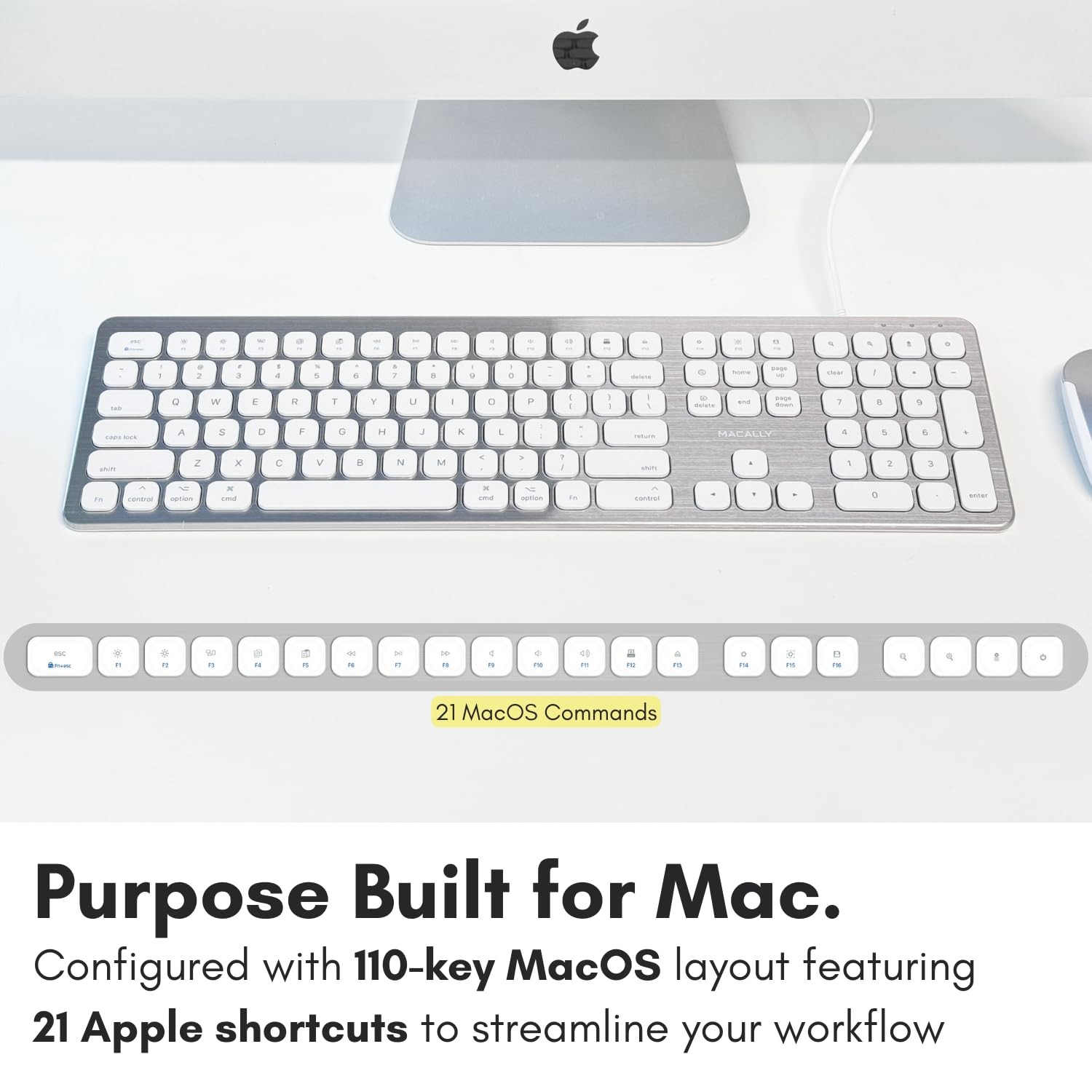 Macally Wired Keyboard for Mac with USB Ports for Mouse - Compatible Apple Keybo