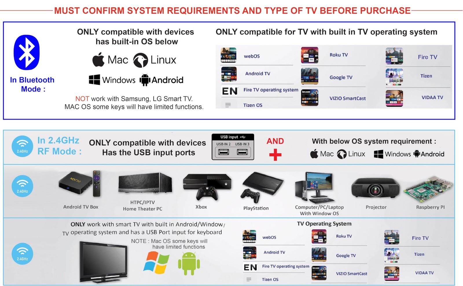 Bluetooth 2.4GHz RF Wireless Mini Keyboard Remote Control Touchpad Mouse Combo