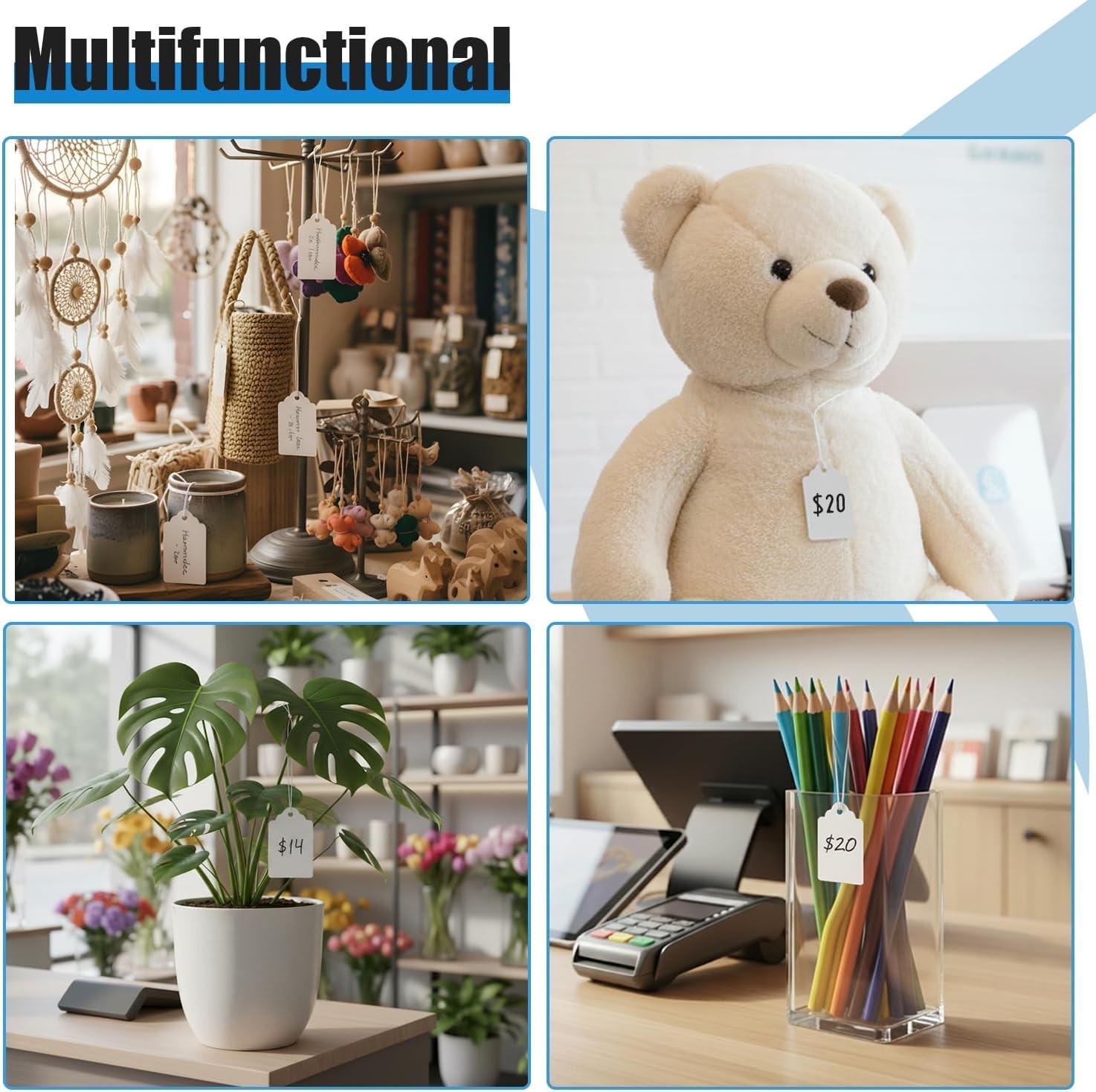 Price Tags with String Attached, 1000Pcs White Marking Merchandise Strung Tags W