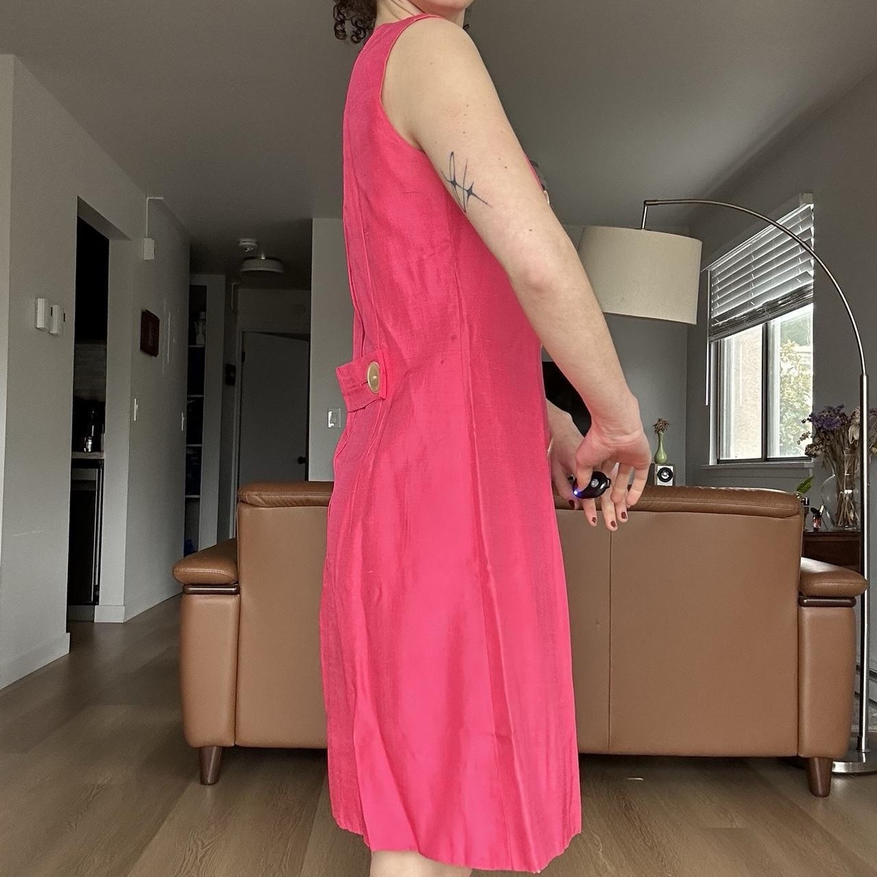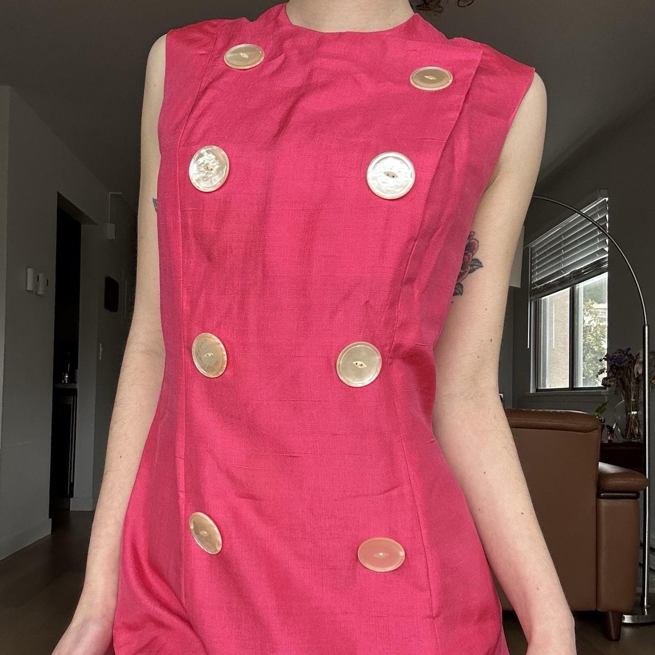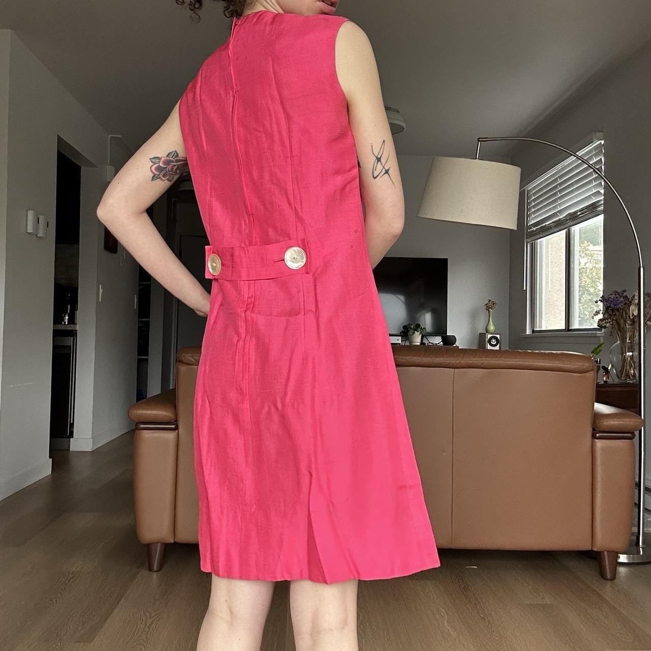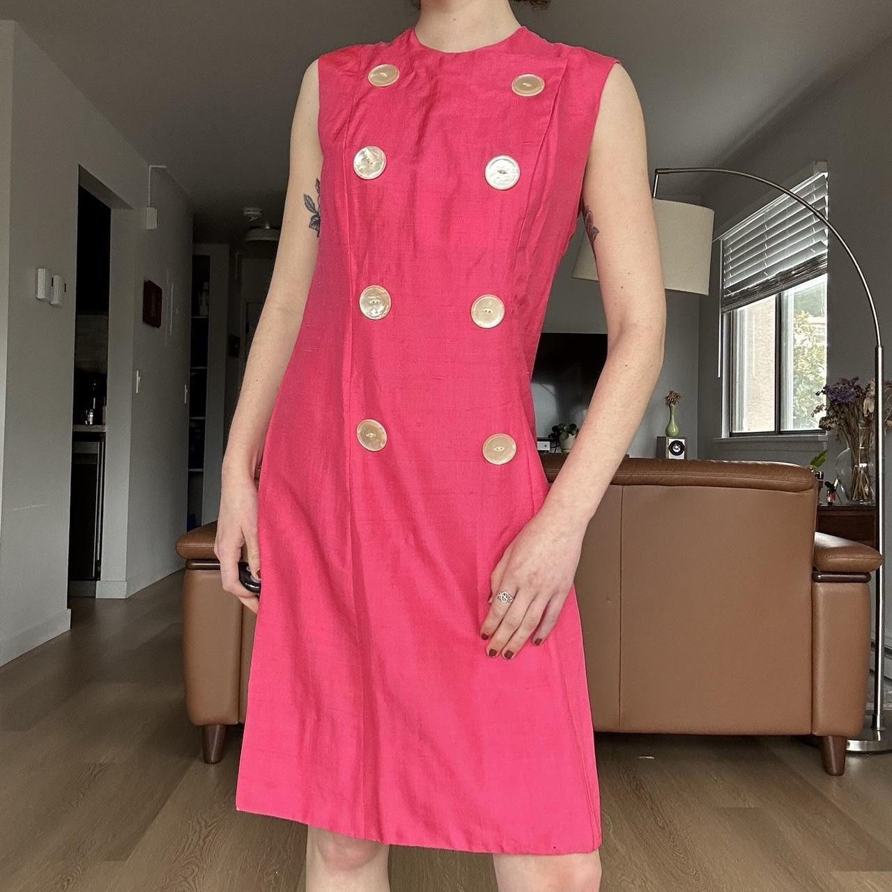 как выглядит Vintage 1960s Pink Dayglo Shift Dress w/ Buttons by Mancini of California фото