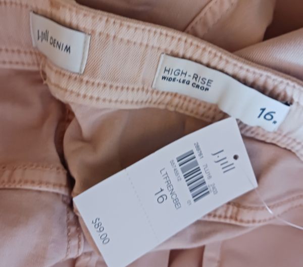 как выглядит J. Jill Denim French Beige Hi-Rise Wide Leg Cropped Pants Size 16 NWT 89 фото