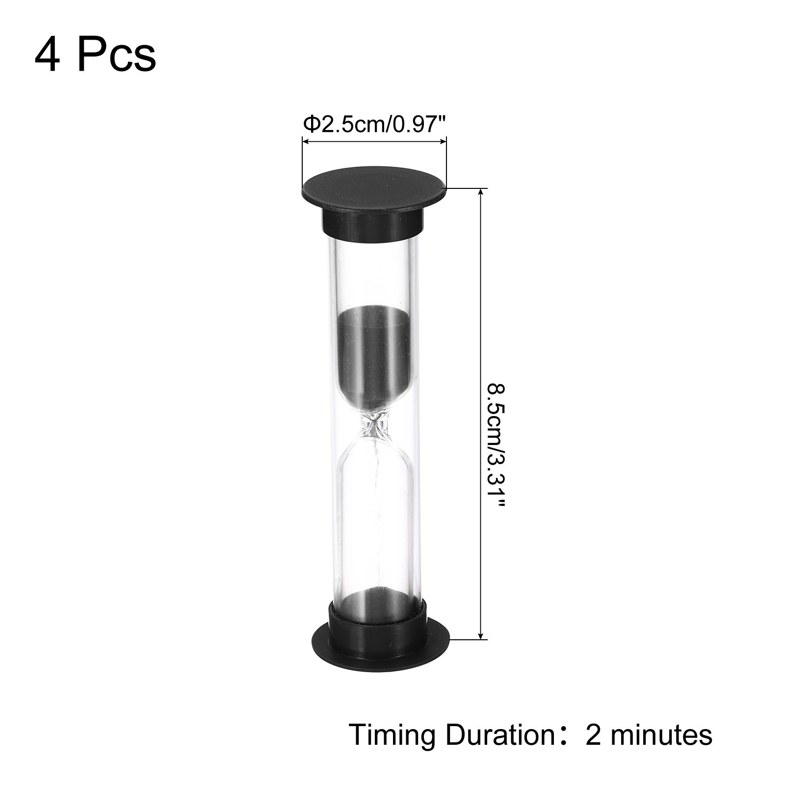 4Pack 2 Minute Sand Timer Small Sandy Clock Count Down Sand Glass Black
