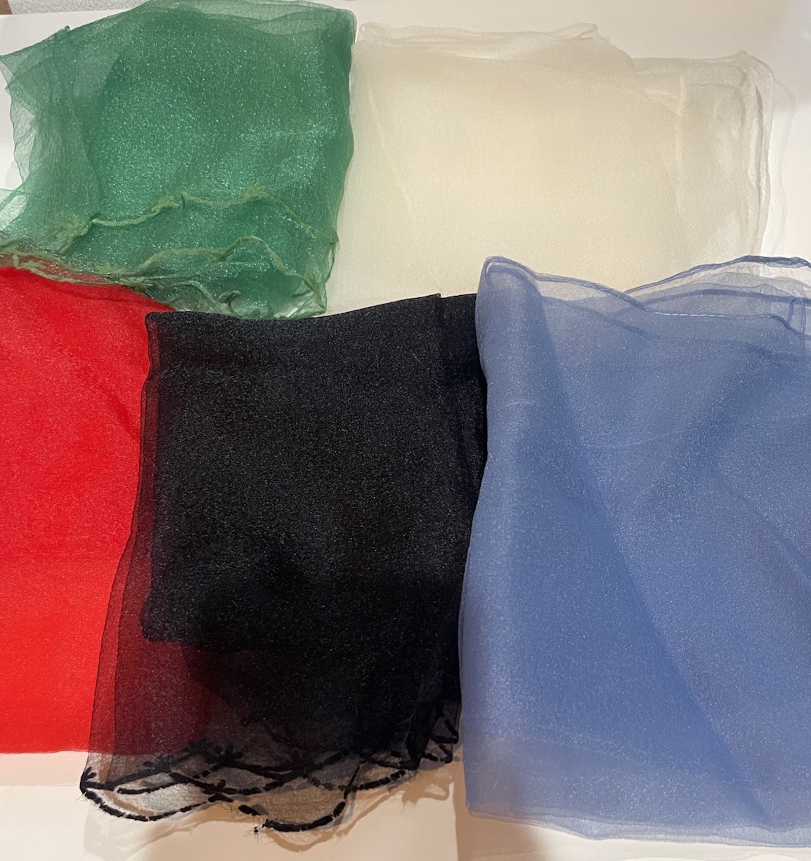 как выглядит Lot of 7 Vintage 50s-60s Style Nylon Sheer Scarves Pink Red White Green Black фото