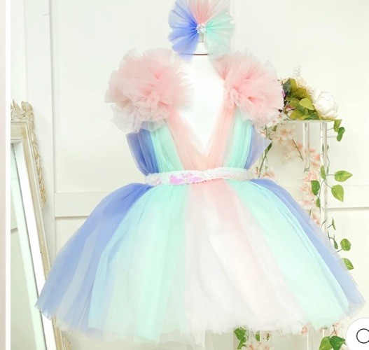 как выглядит Baby Girls Tulle pom pom Unicorn Birthday Party Dress Size 1 Year фото