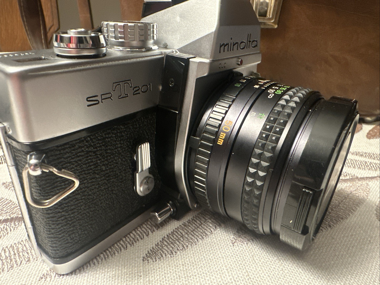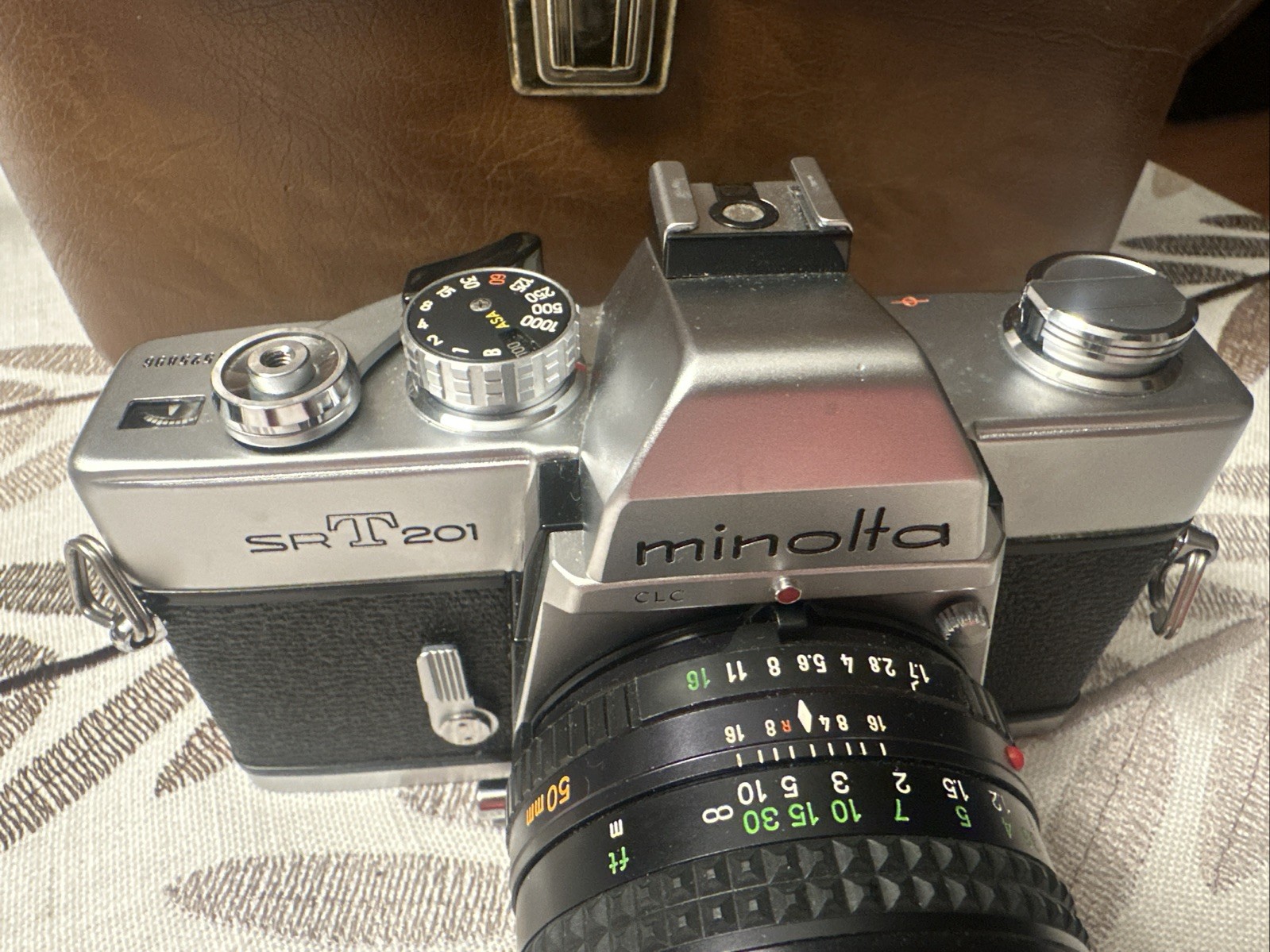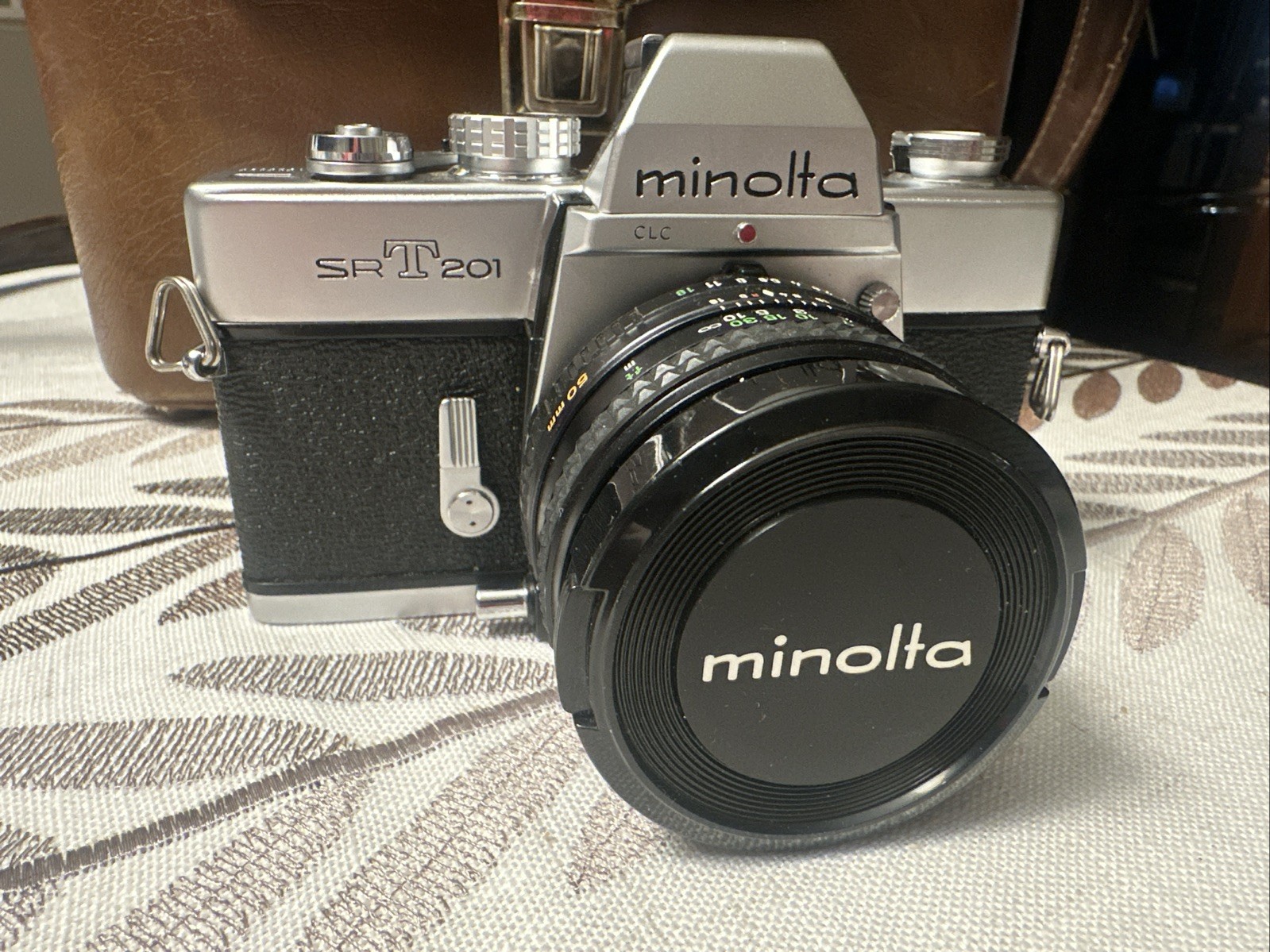 MINT Minolta SRT 201 35mm Film Camera w/ Manual, New Battery, Hard Case WORKS