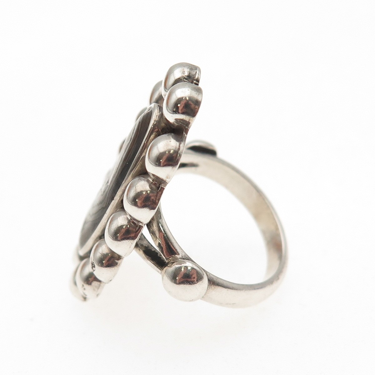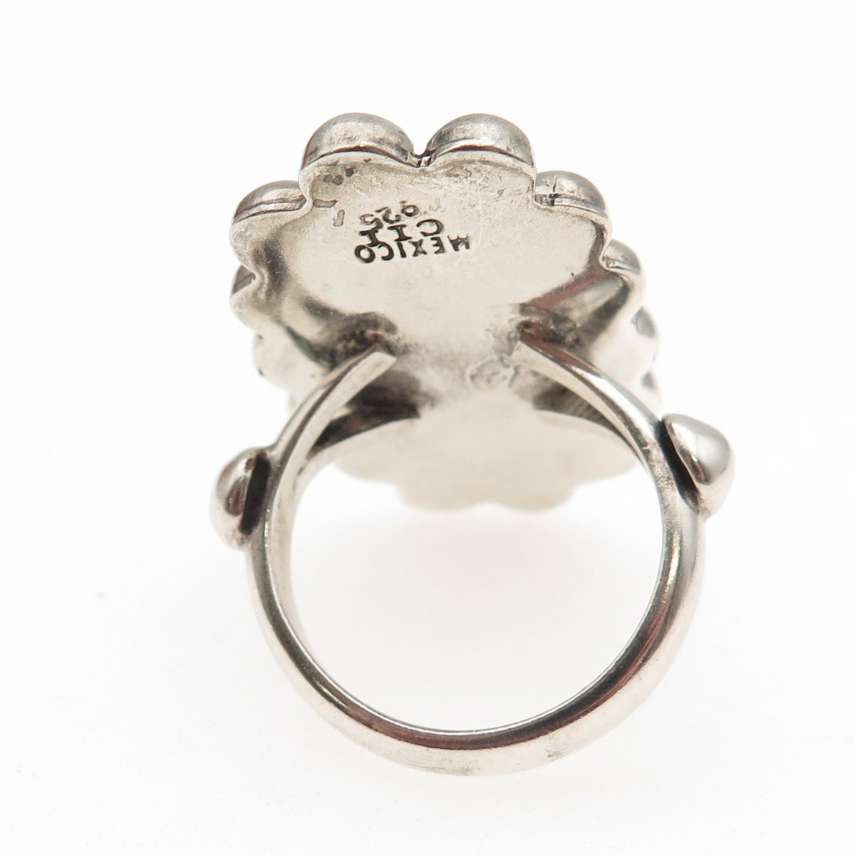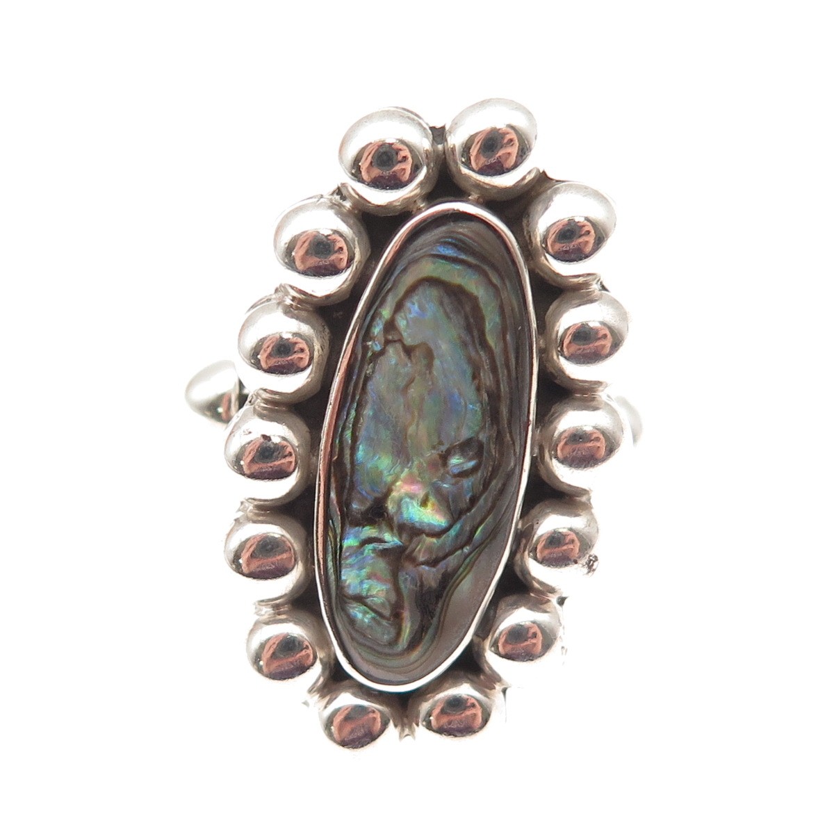 925 Sterling Silver Vintage CII Mexico Real Abalone Shell Beaded Ring Size 6.5