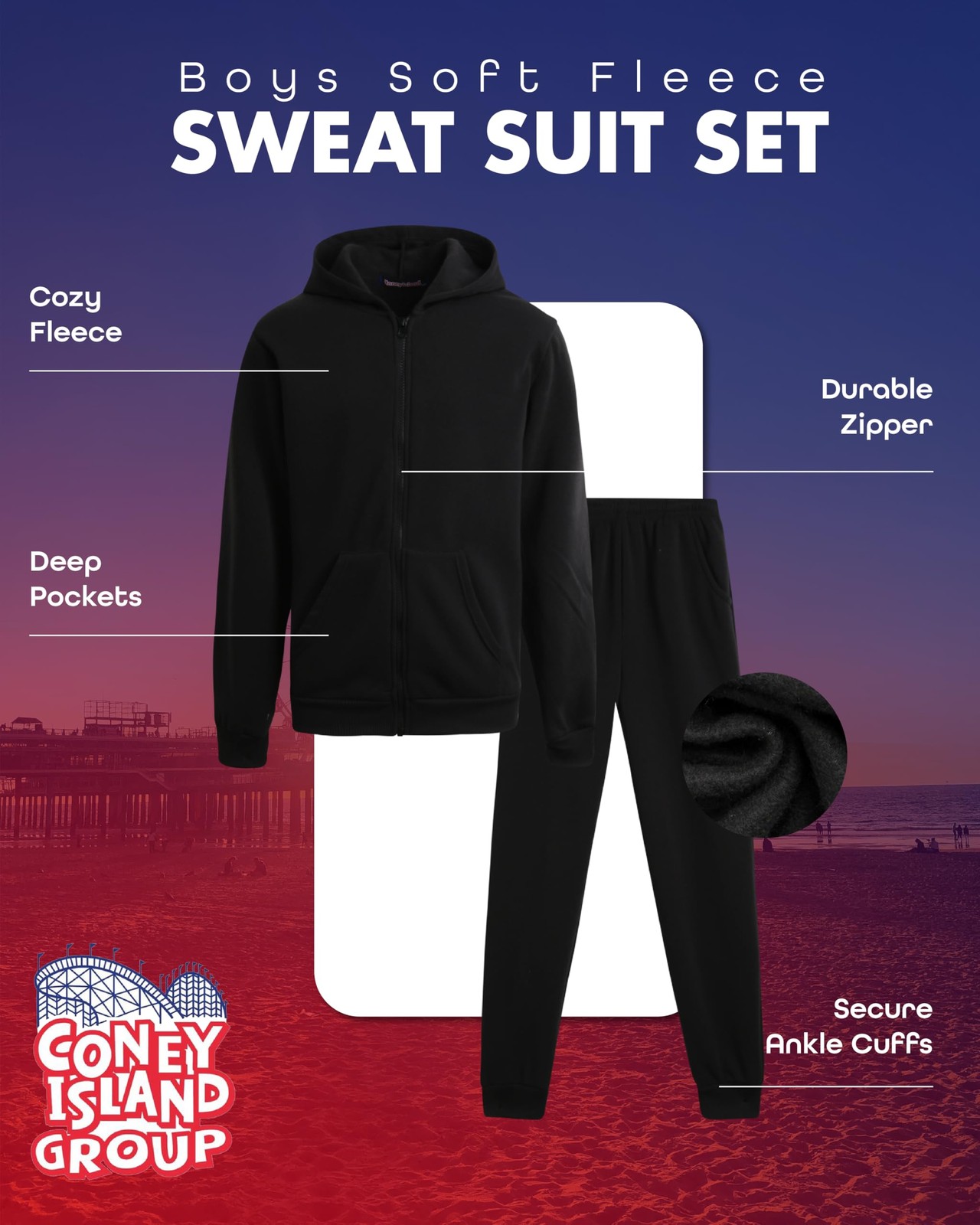 как выглядит Boys Sweatsuit Set - 2 Piece Cozy Soft Fleece Zip Up Hoodies and Athletic Jog... фото