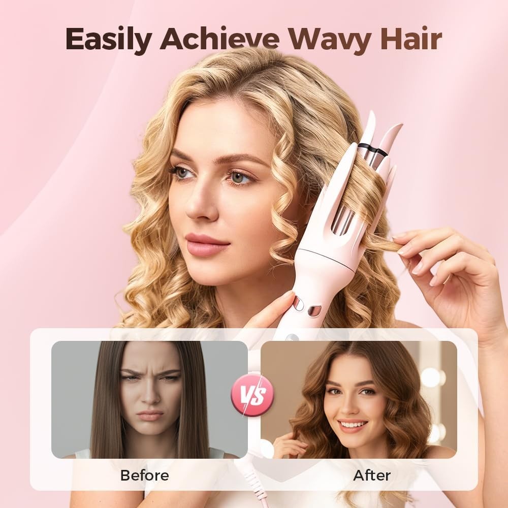 Automatic Hair Curler, Auto Rotating Curling Iron with Temp Settings, Anti-Scald