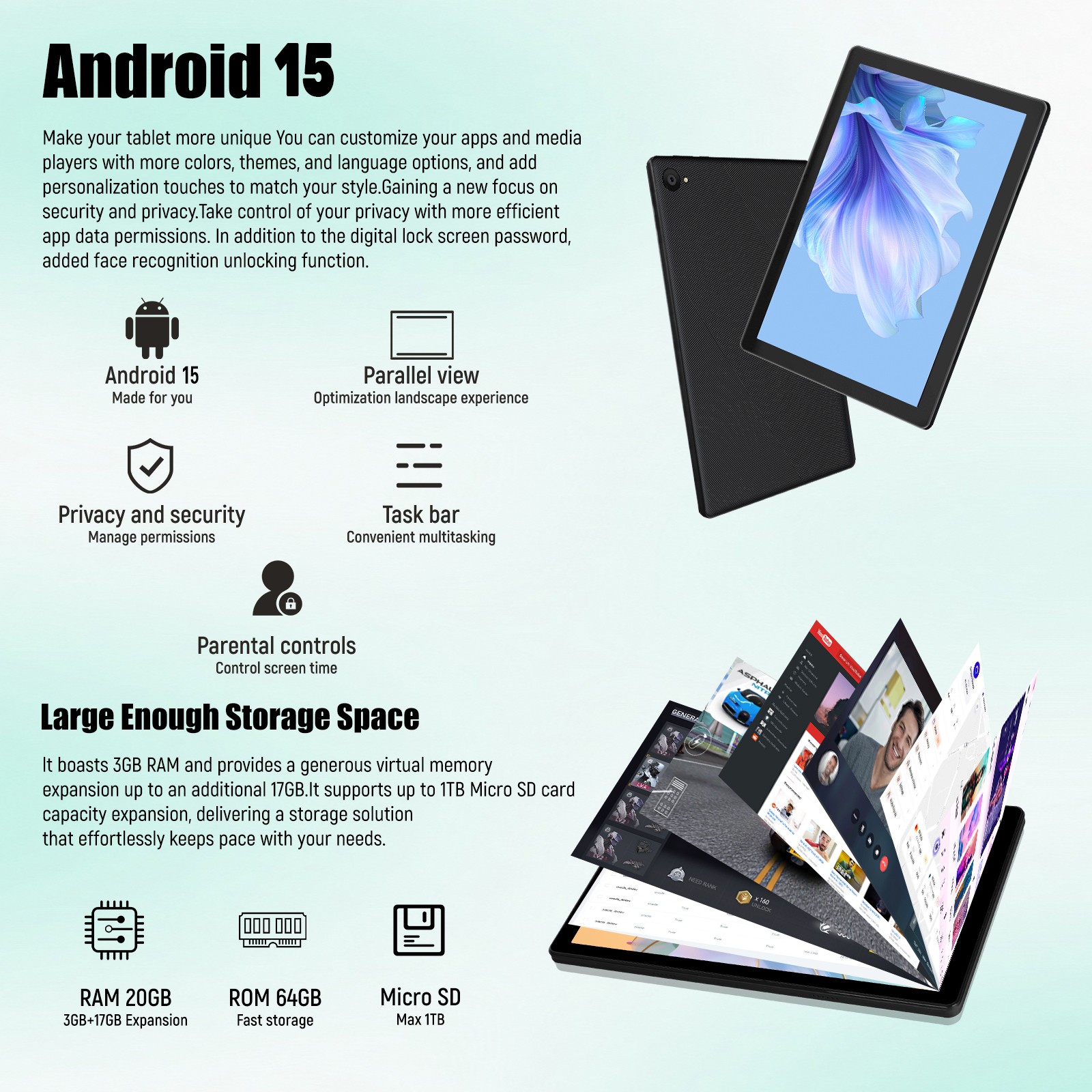 Android 15 20 3 17 GB RAM 64 ROM Tablet Dual Camera IPS LCD Widevine L1 WIFI