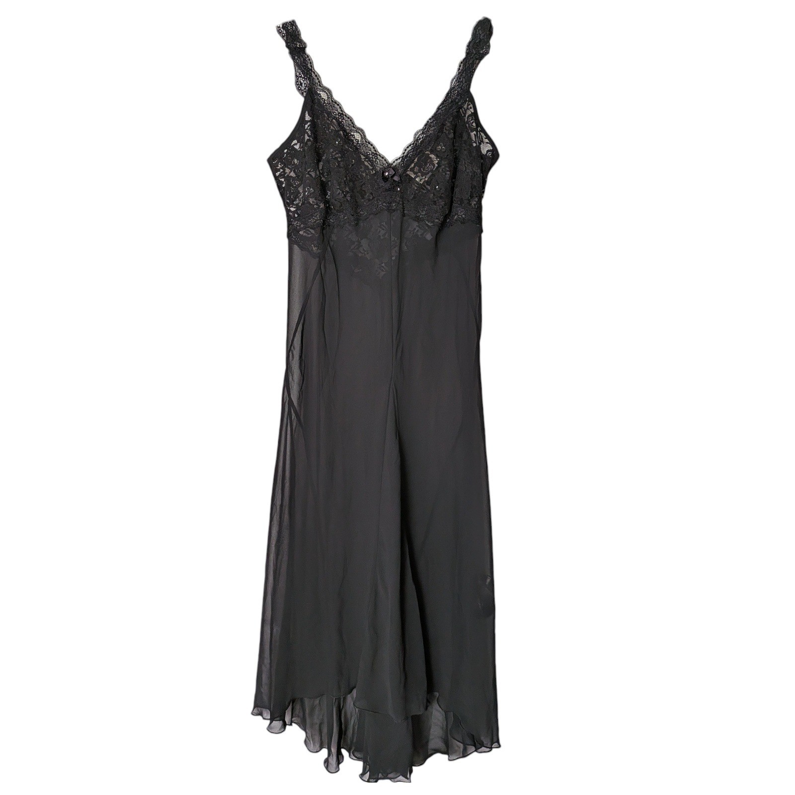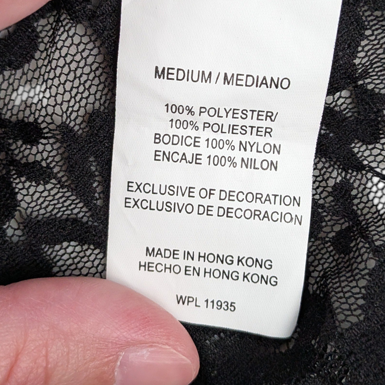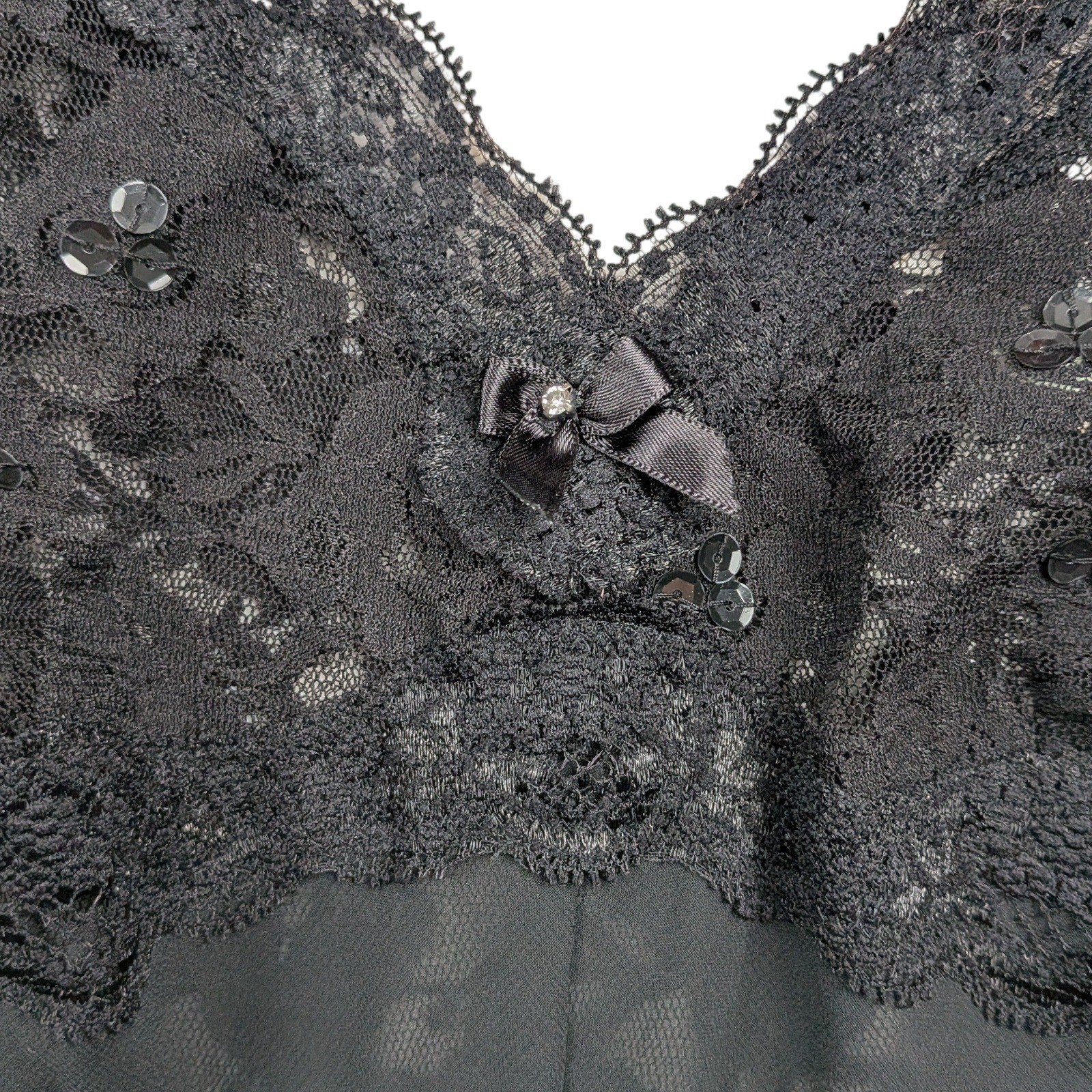 California Dynasty Lace Sheer Full Slip Lingerie Dress Sz Medium Black Babydoll