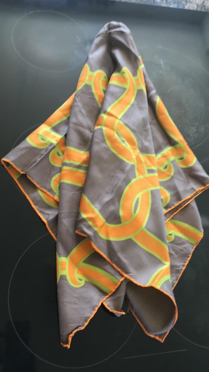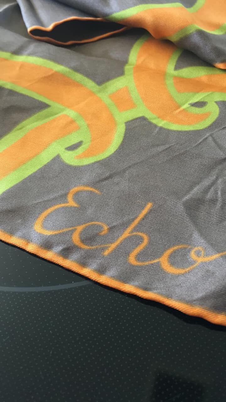 Vintage Echo Silk Scarf 60s Brown Orange Hand rolled 30 sq