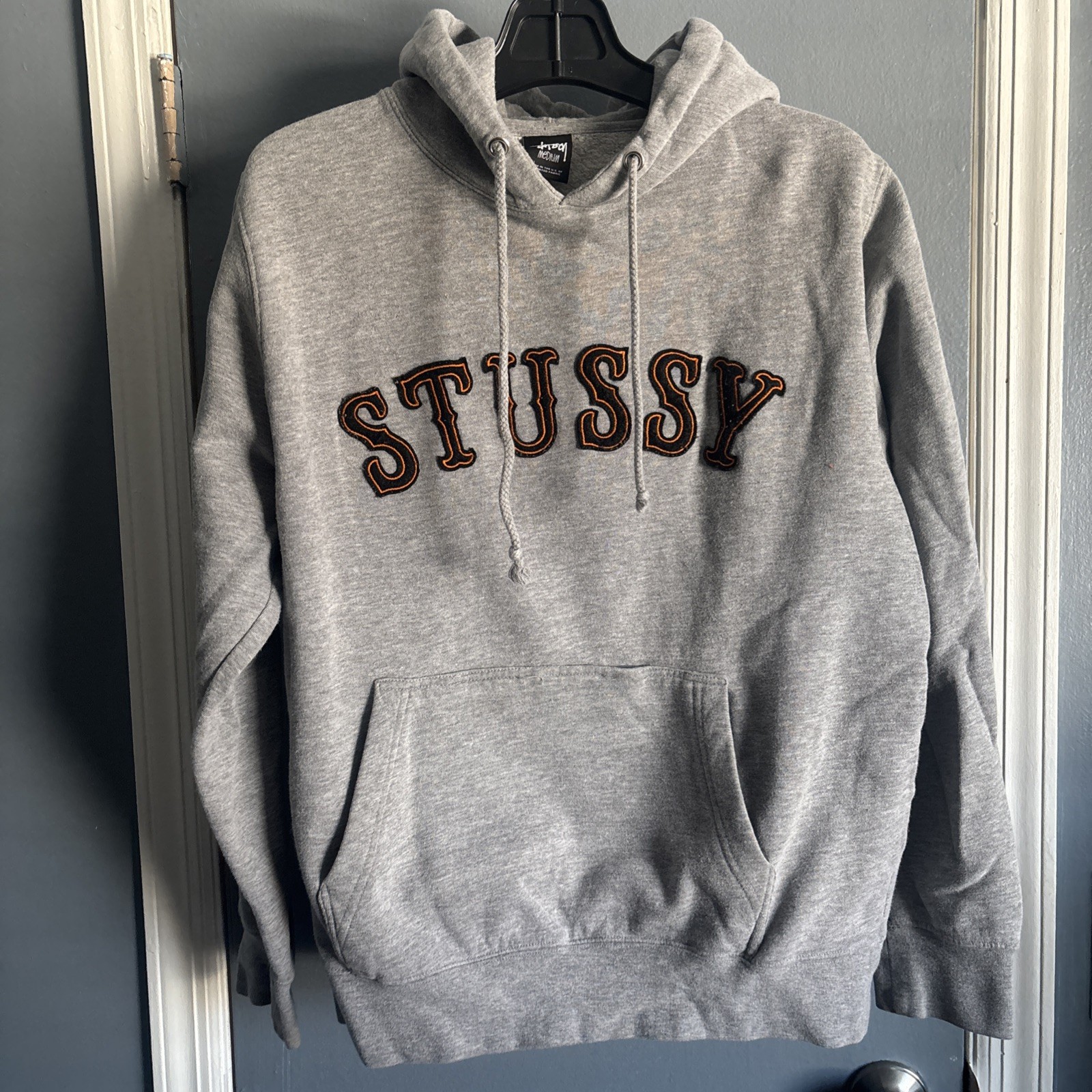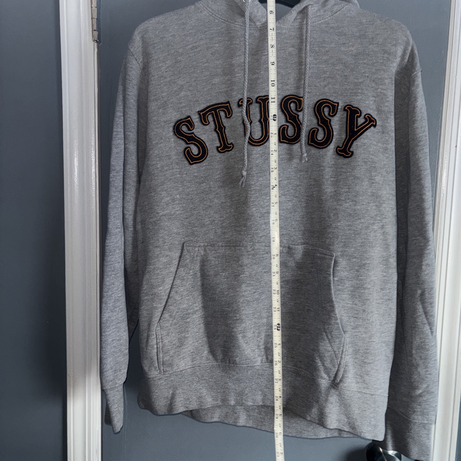 Vintage Stussy Hoodie Big Logo Embroidered Skateboard USA Men Size Medium Gray