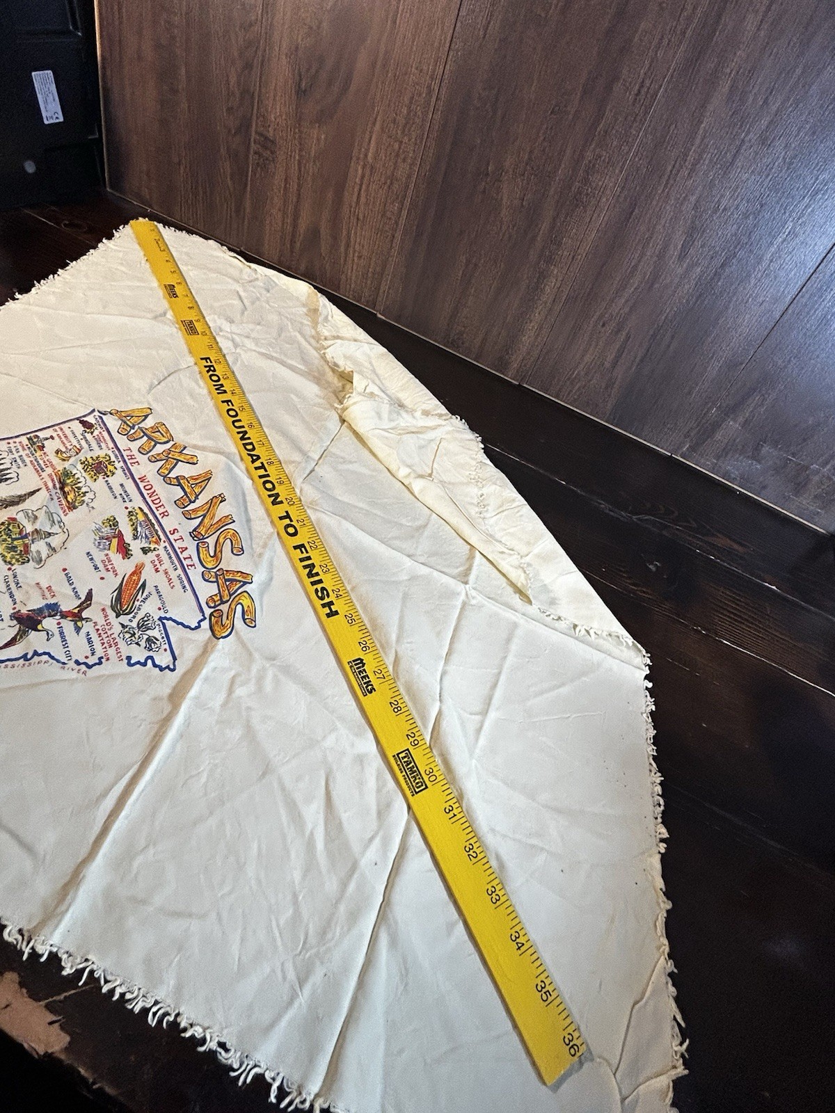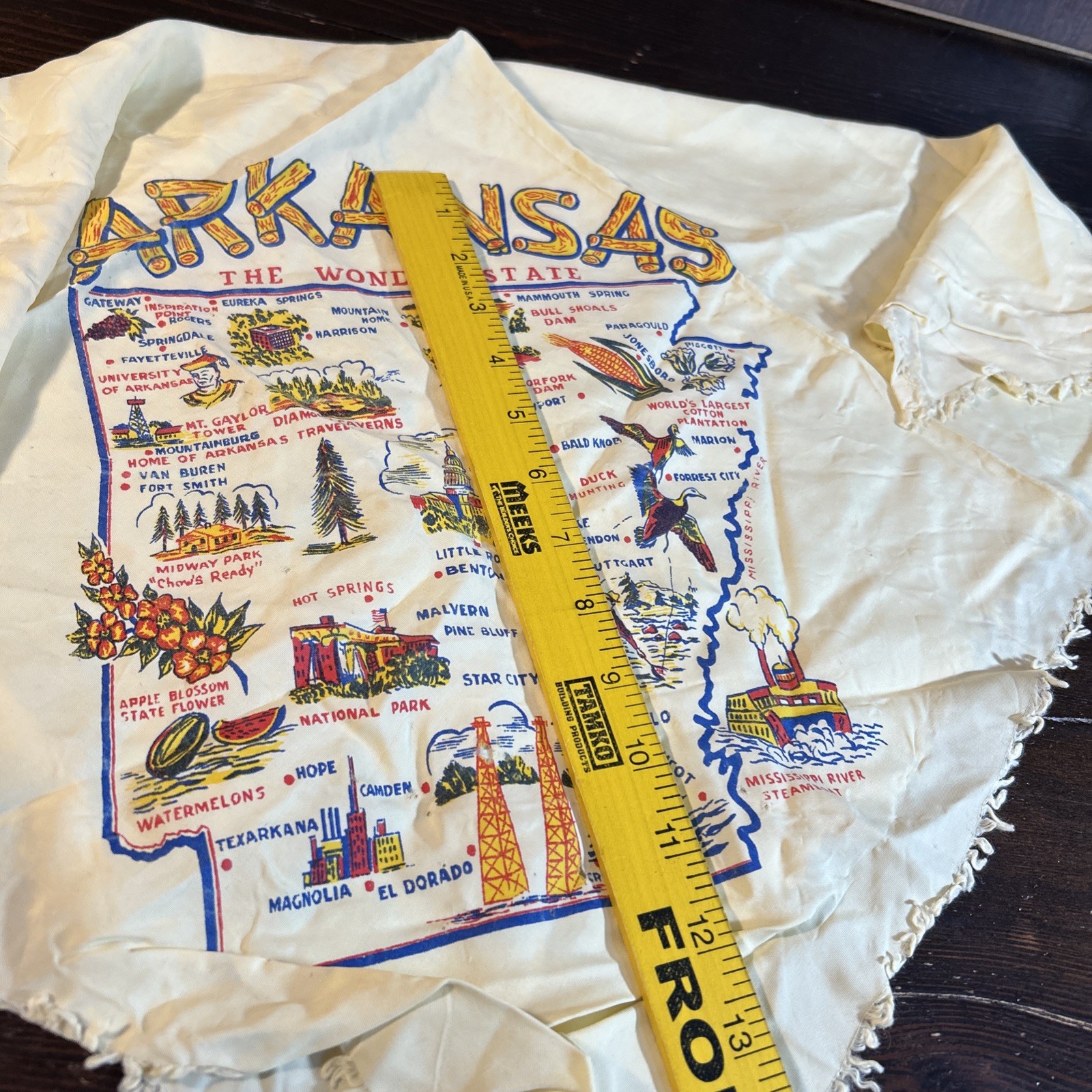 как выглядит Vintage Arkansas Souvenir Scarf 1950 s Yellow Retro Wonder State Map 36 X 36 фото