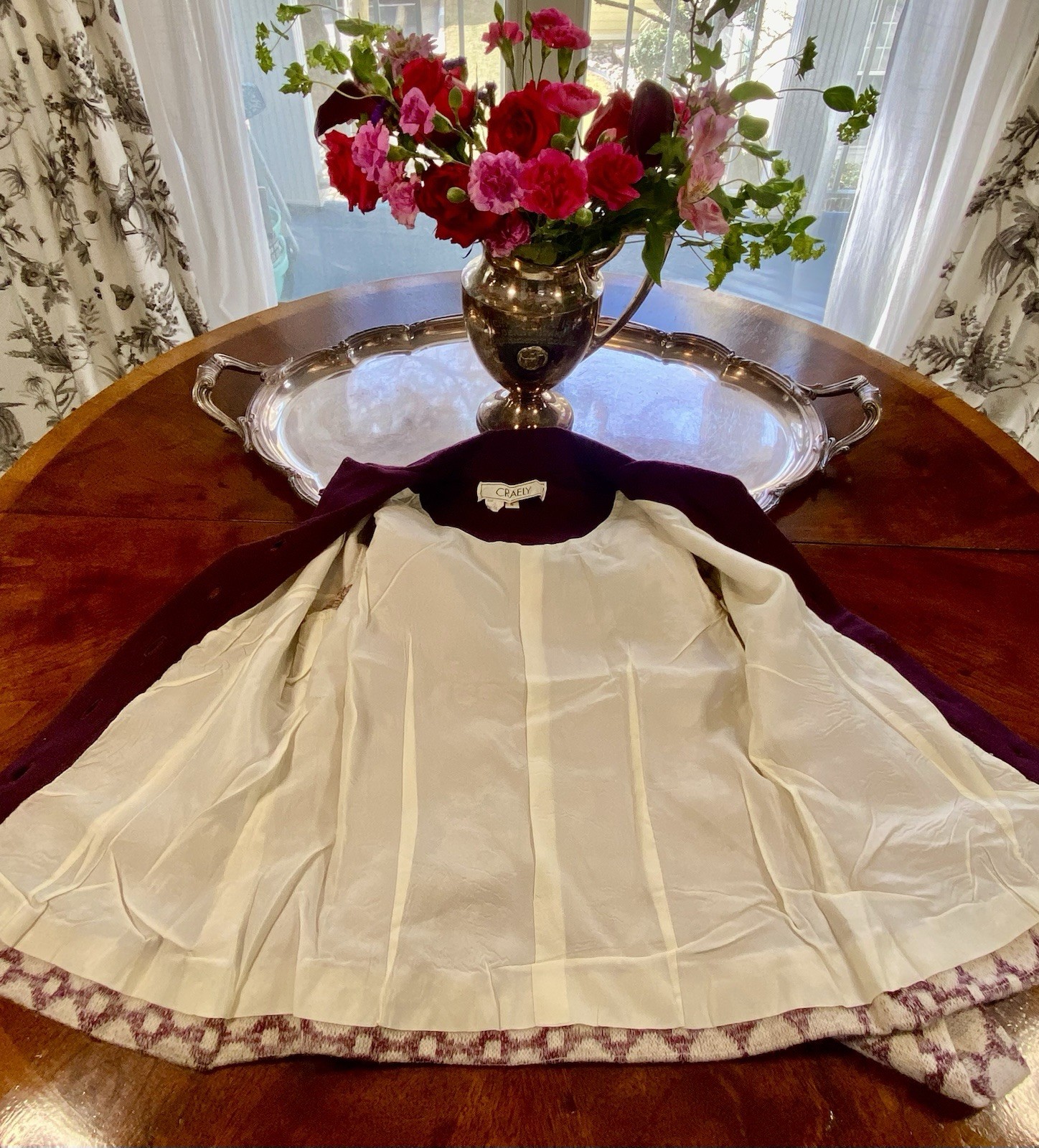 как выглядит Vintage 1970s Wool Purple White 2 Piece Top Skirt Set фото