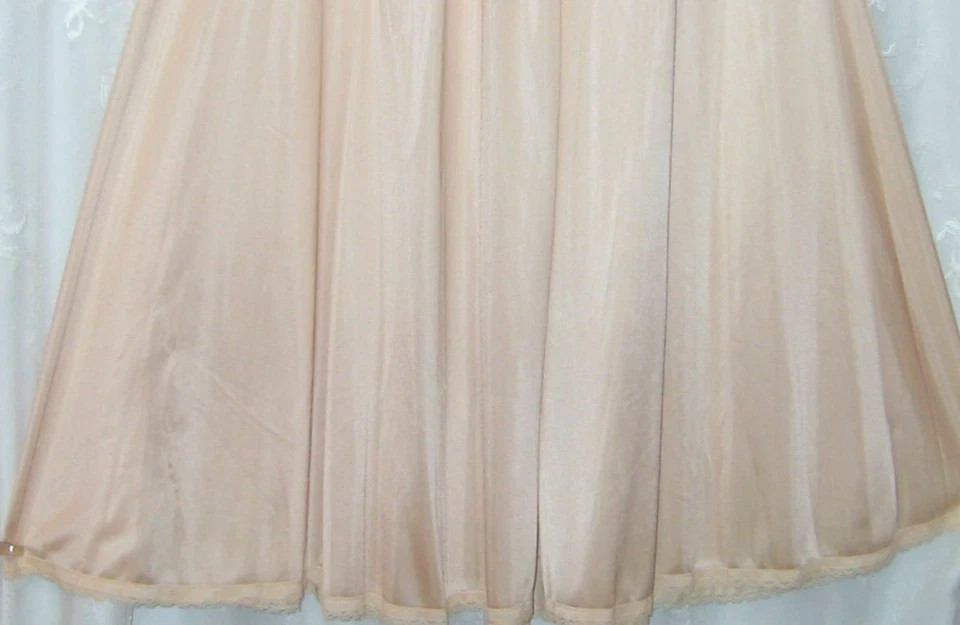 NWT VTG SMALL OLGA SECRET HUG CHAMPAGNE STRETCH LACE TRIM SWING HALF SLIP 12257