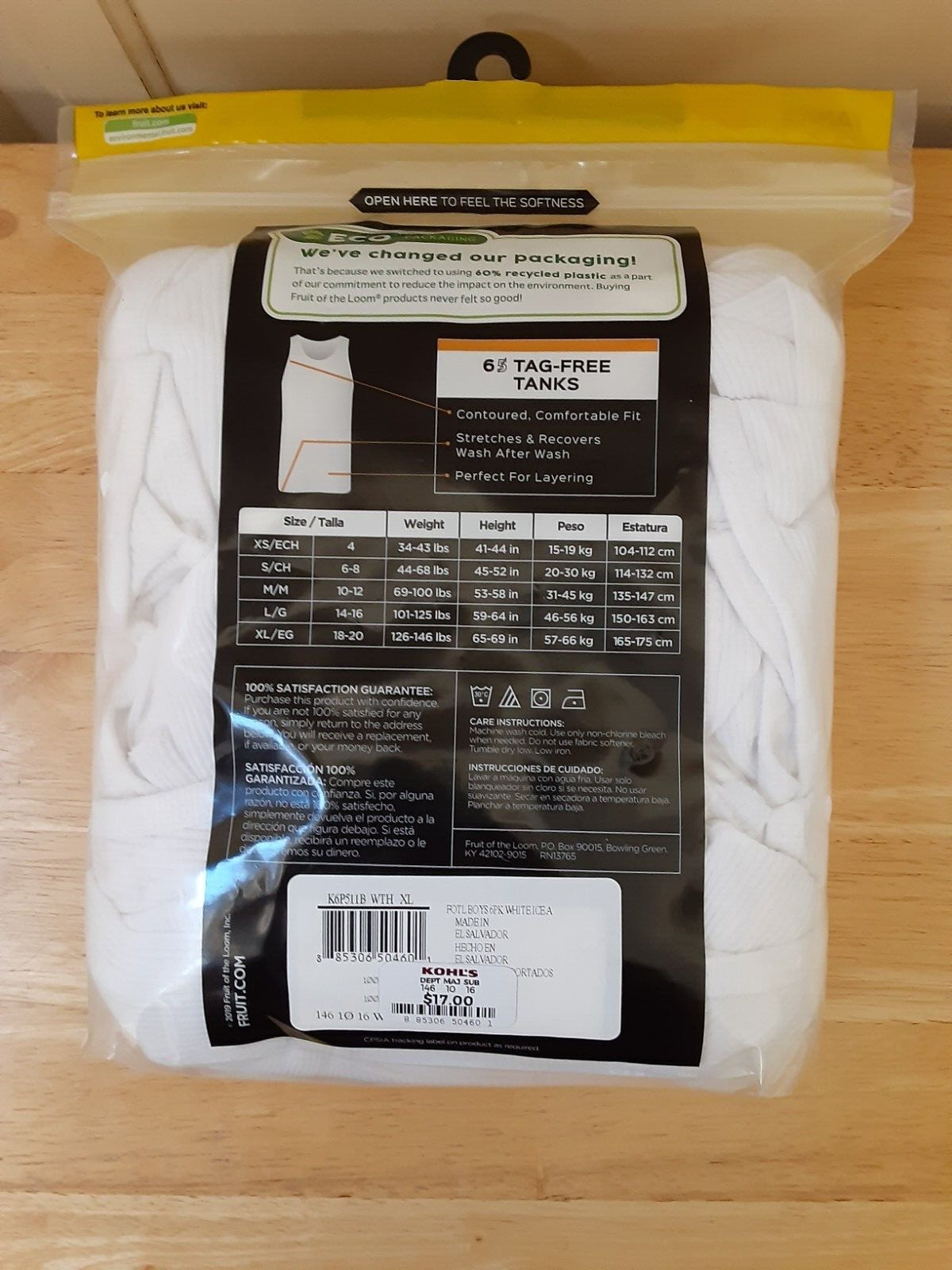 как выглядит Fruit of The Loom Boys 6 Pack Tag-Free Tanks Size XL 18-20 NEW WITH TAGS фото