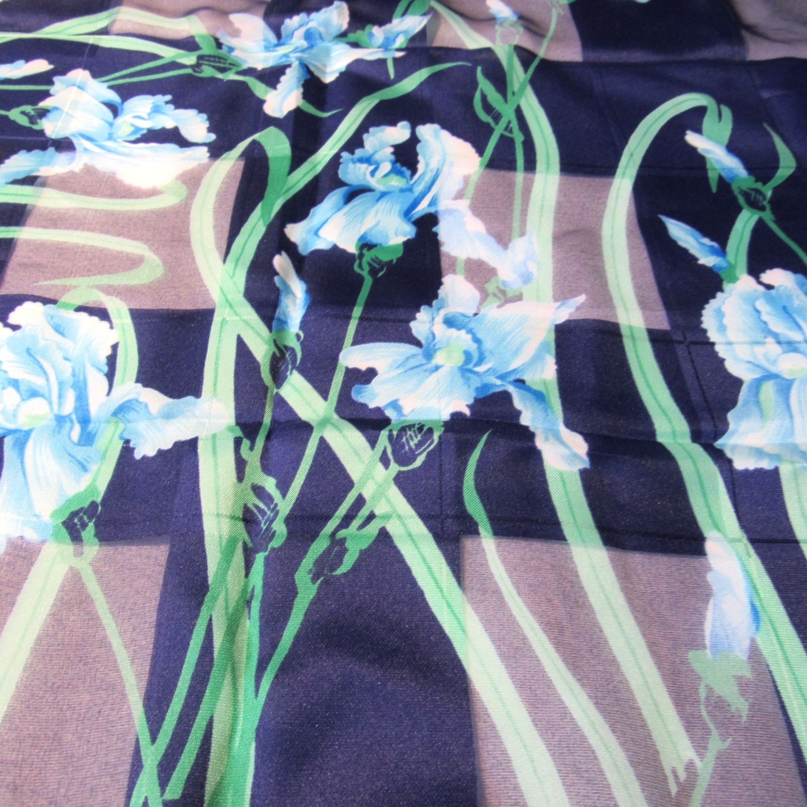 Vintage Dark Blue with Blue Irises Italian Polyester Scarf 34 x 34