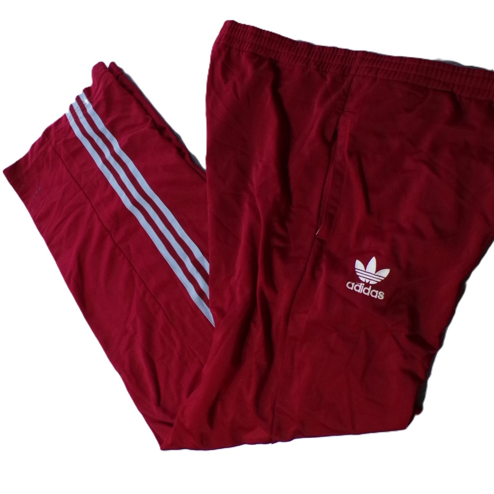 как выглядит Vtg 80s Adidas ATP Track Pants Mens XL Burgundy w Light Blue 3 Stripes Run DMC фото