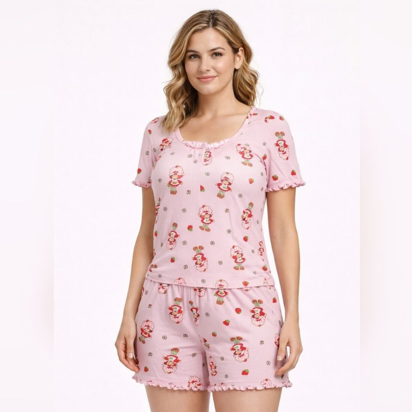 как выглядит Strawberry Shortcake Pink Pajama Set Large фото