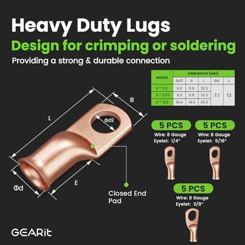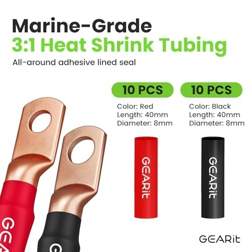 8 Gauge CCA Battery Cable Kit - 25ft Automotive Wire, 20 Heat Shrink Wrap, 15 Lu