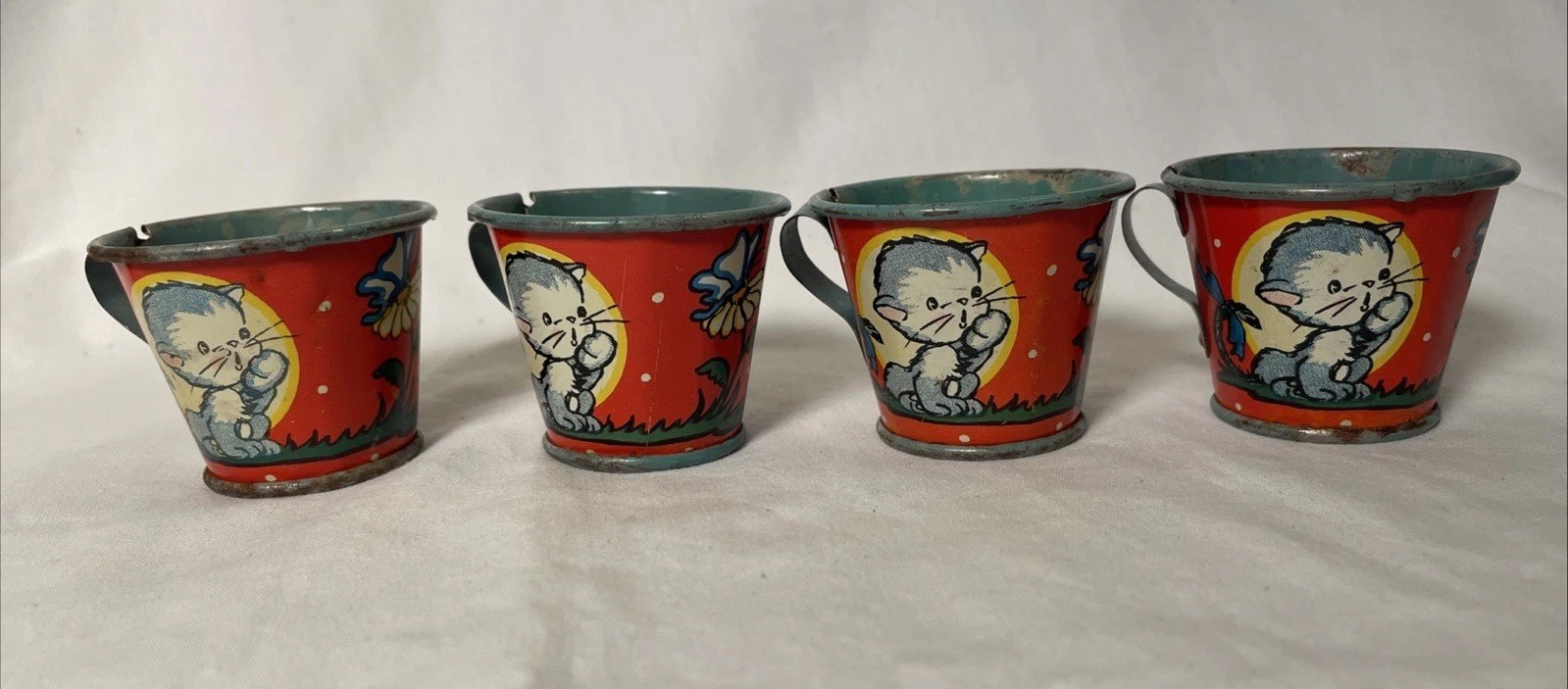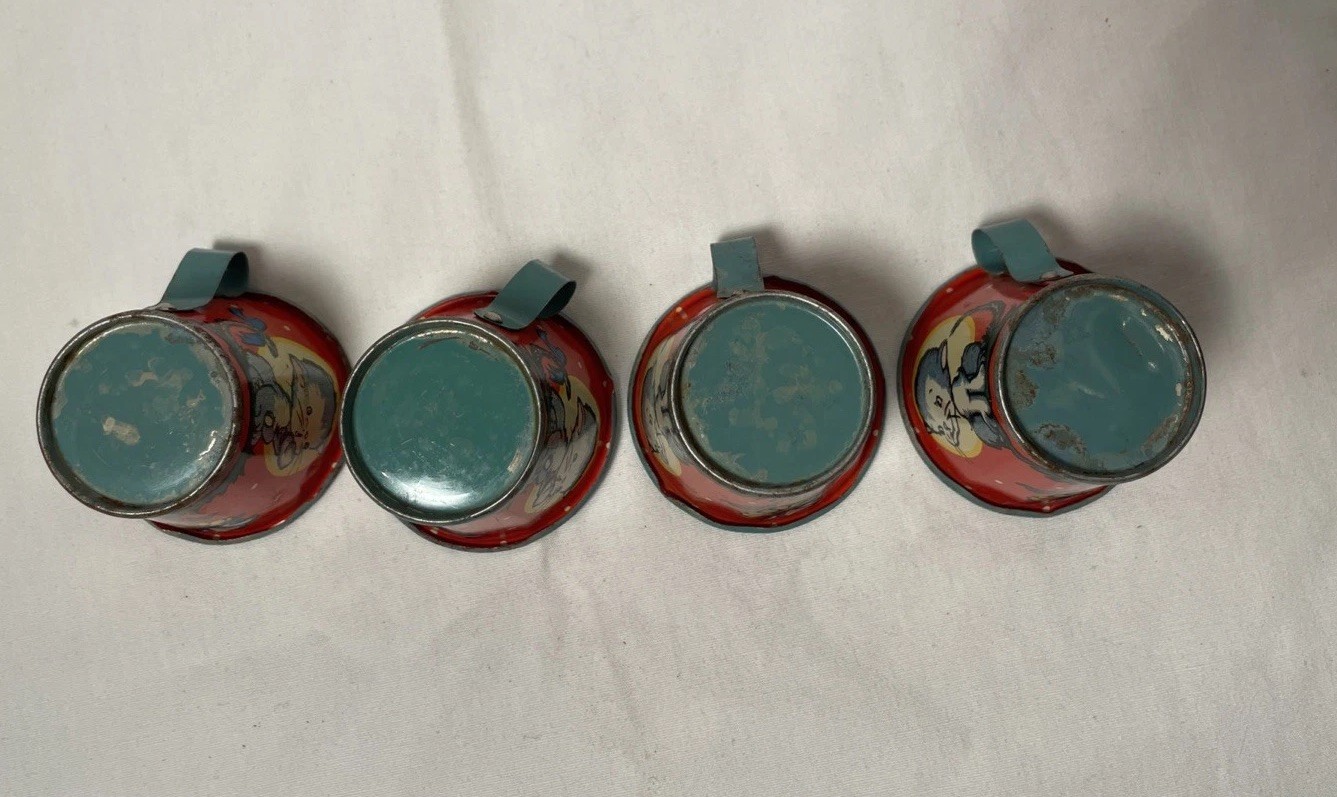 как выглядит Vintage Ohio Art Tin Metal Litho Childrens Tea Set Loves Me, Loves Me Not фото
