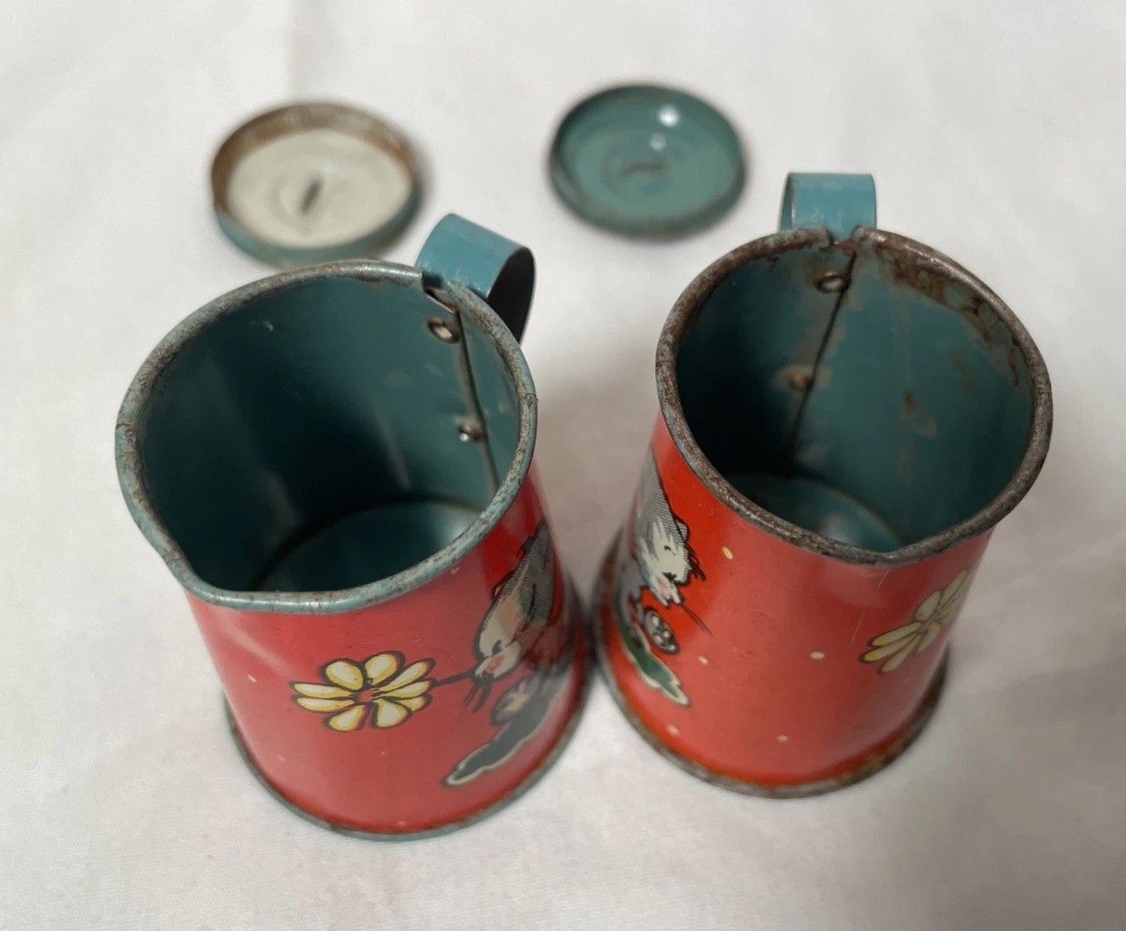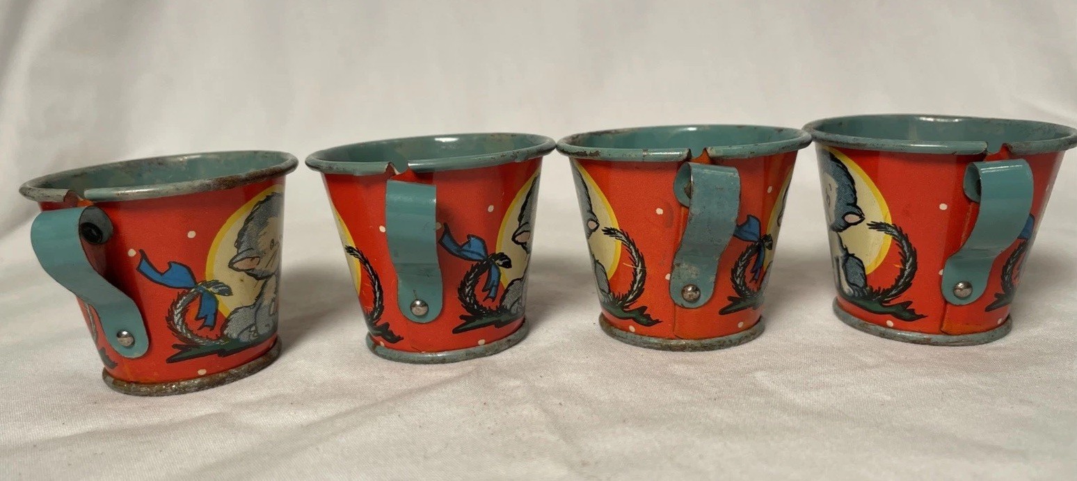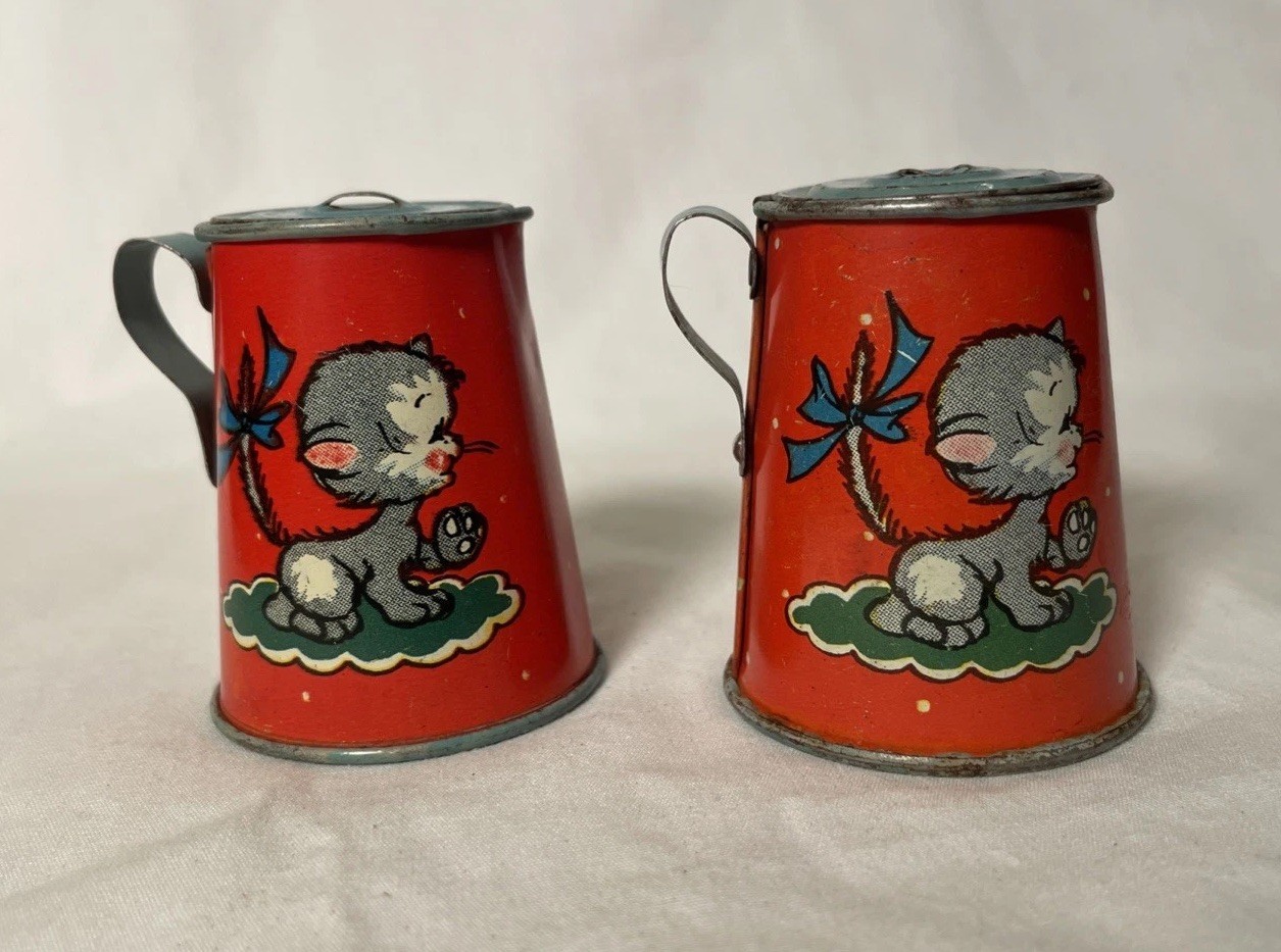 Vintage Ohio Art Tin Metal Litho Children's Tea Set Loves Me, Loves Me Not