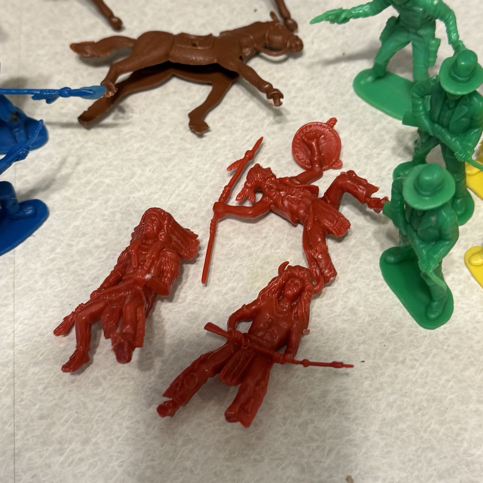 Vintage Plastic Cowboys Indians Horses Toy Figures Lot of 25 Multicolor