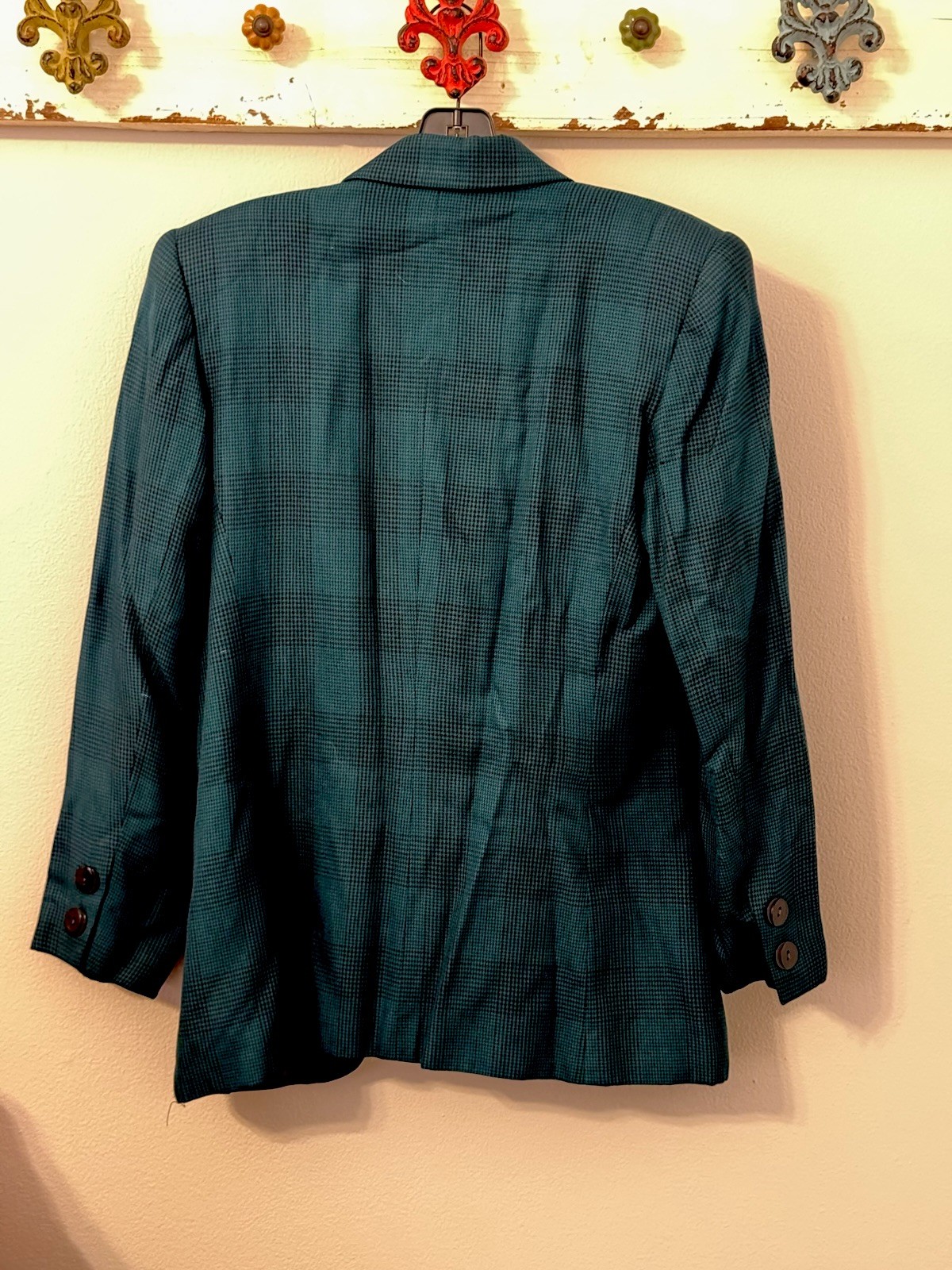 как выглядит Vintage Kasper ASL Women s Green Black Checker Button Woven Blazer / Size 8 фото