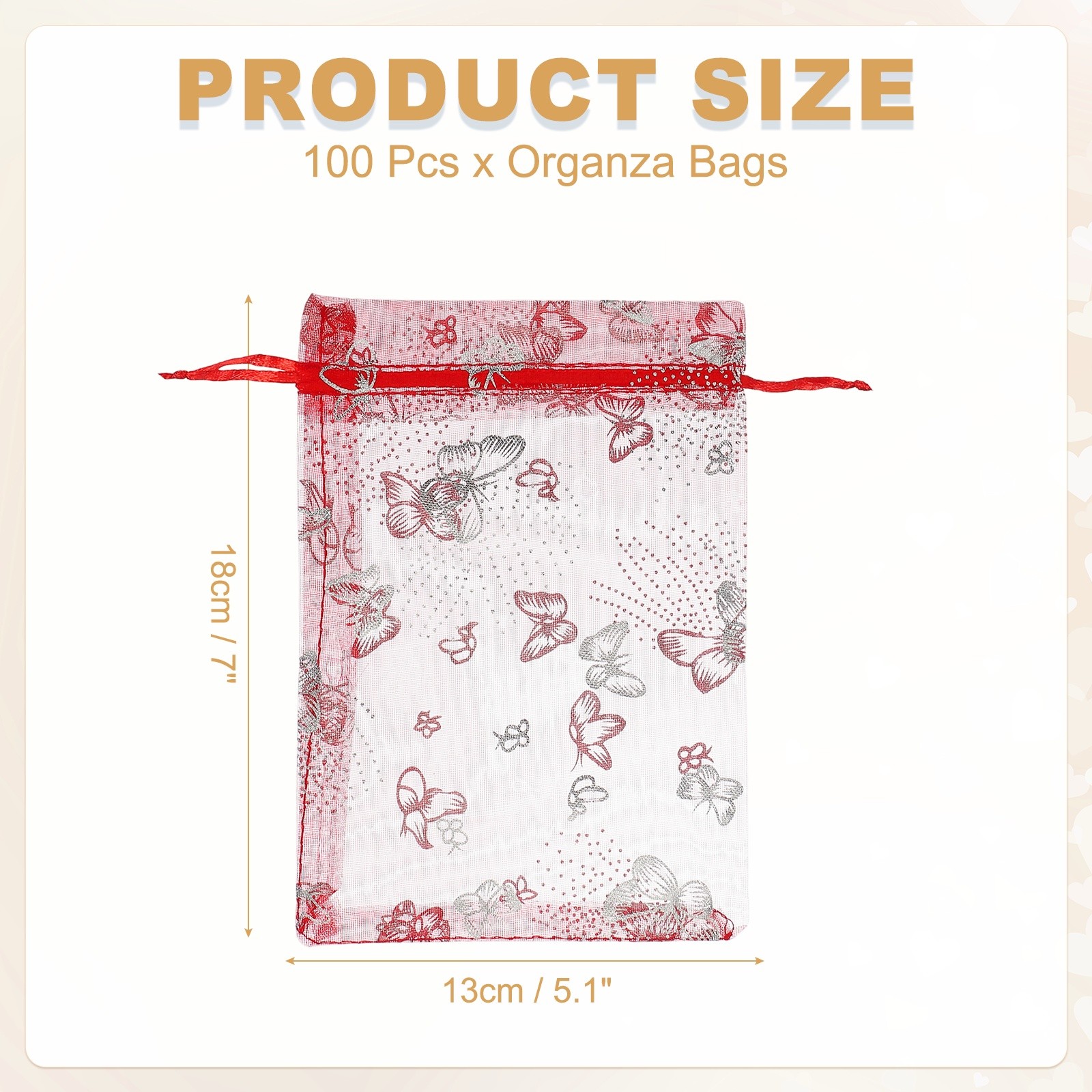 как выглядит Organza Bags, 100 Pcs 5.1 x 7 Inch Butterfly Mesh Candy Pouch, Red Silver фото