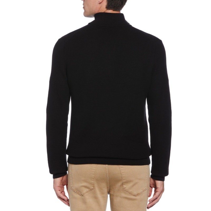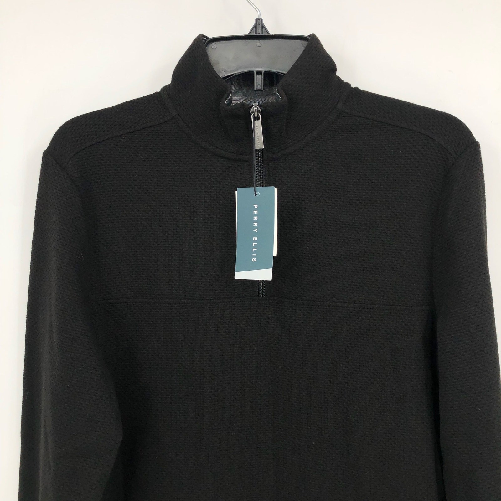 как выглядит PERRY ELLIS Mens Long Sleeve Quarter Zip Sweater Small Black Ribbed Knit NWT фото