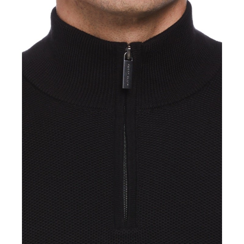 PERRY ELLIS Mens Long Sleeve Quarter Zip Sweater Small Black Ribbed Knit NWT