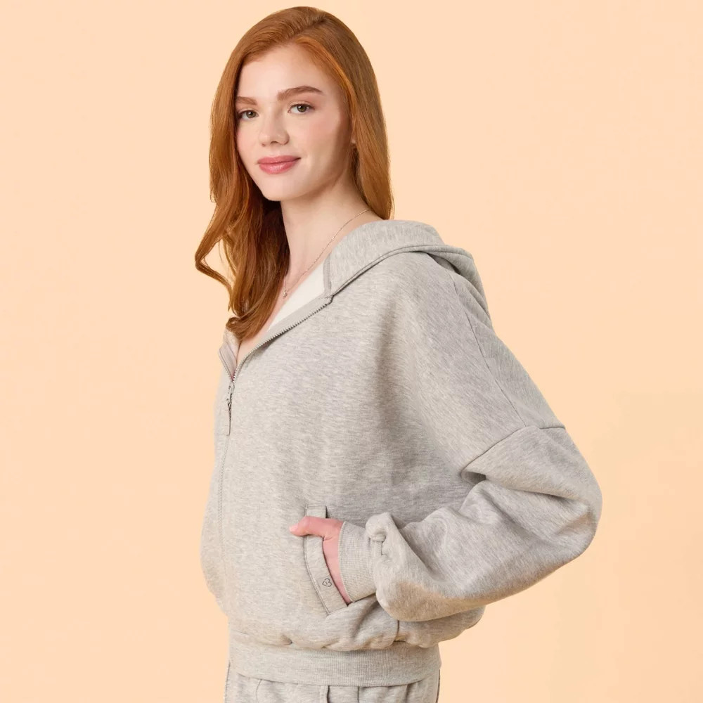 Blogilates Women's Marshmallow Full Zip Hooded Sweatshirt - Heathered Gray L