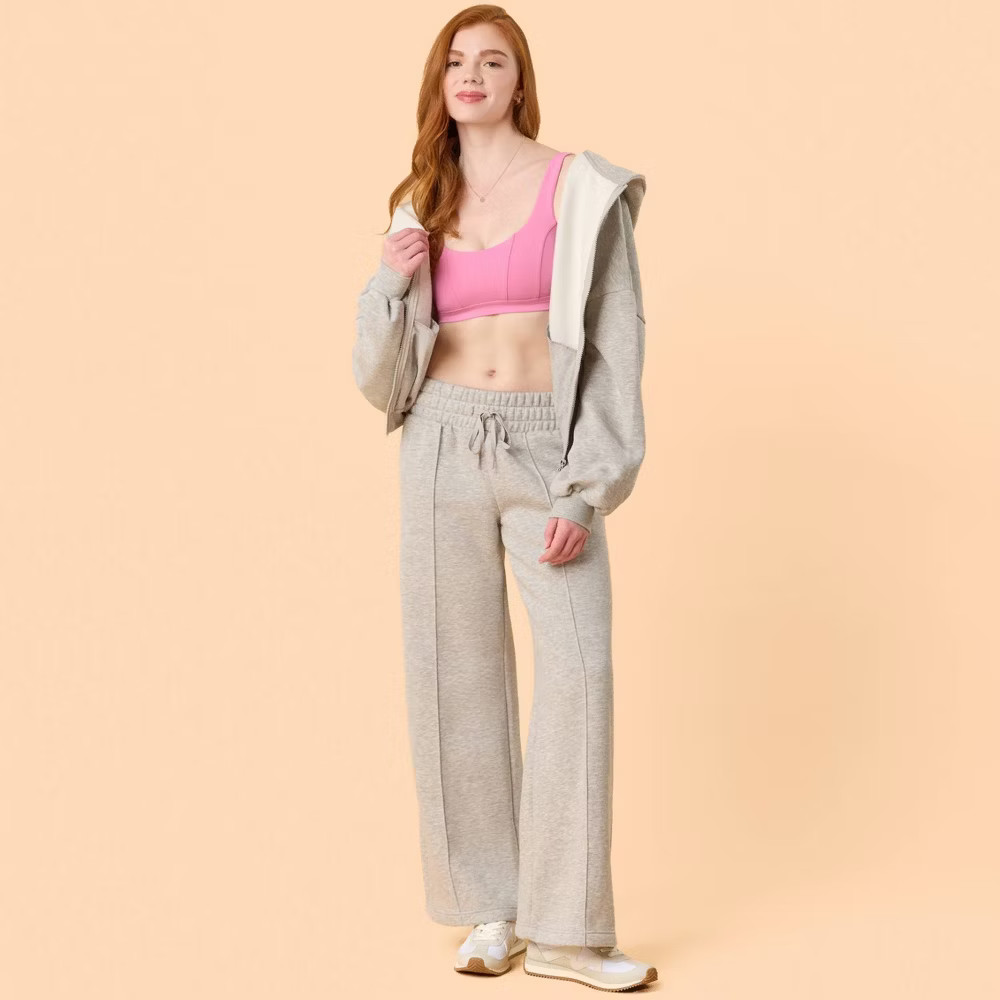 как выглядит Blogilates Womens Marshmallow Full Zip Hooded Sweatshirt - Heathered Gray L фото