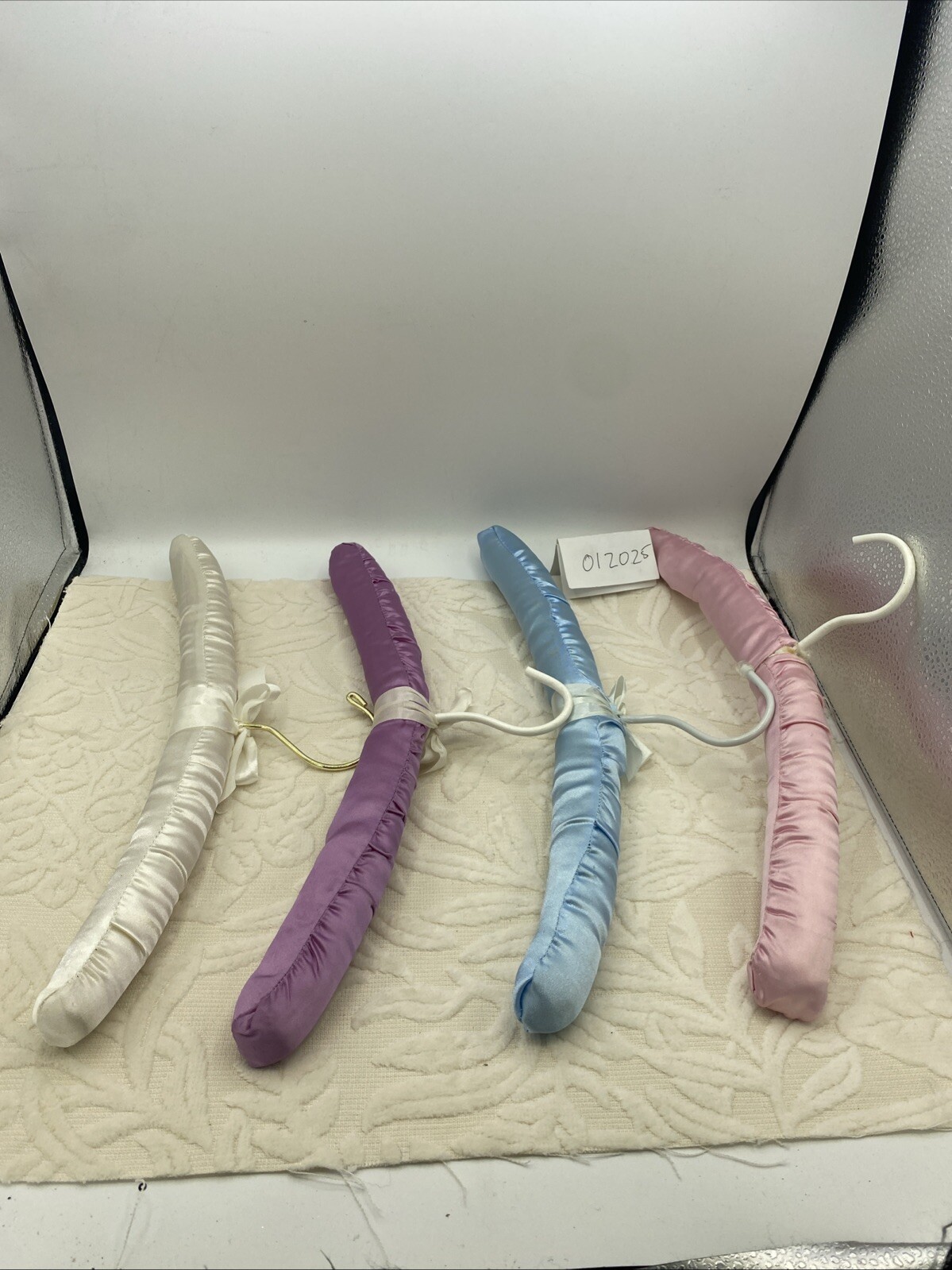 Vintage Satin Covered Clothes Hangers Pastel Colors Set of 4