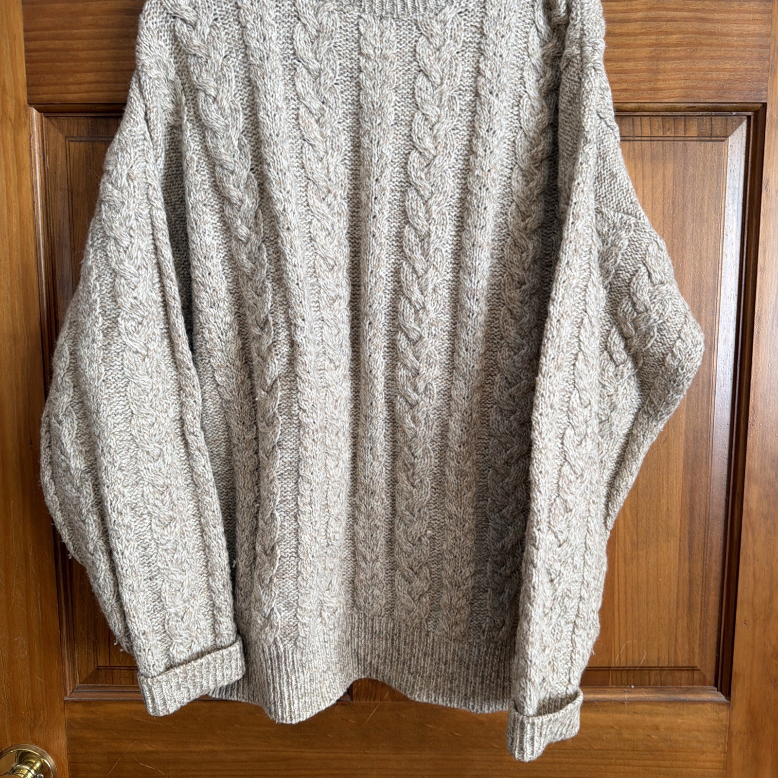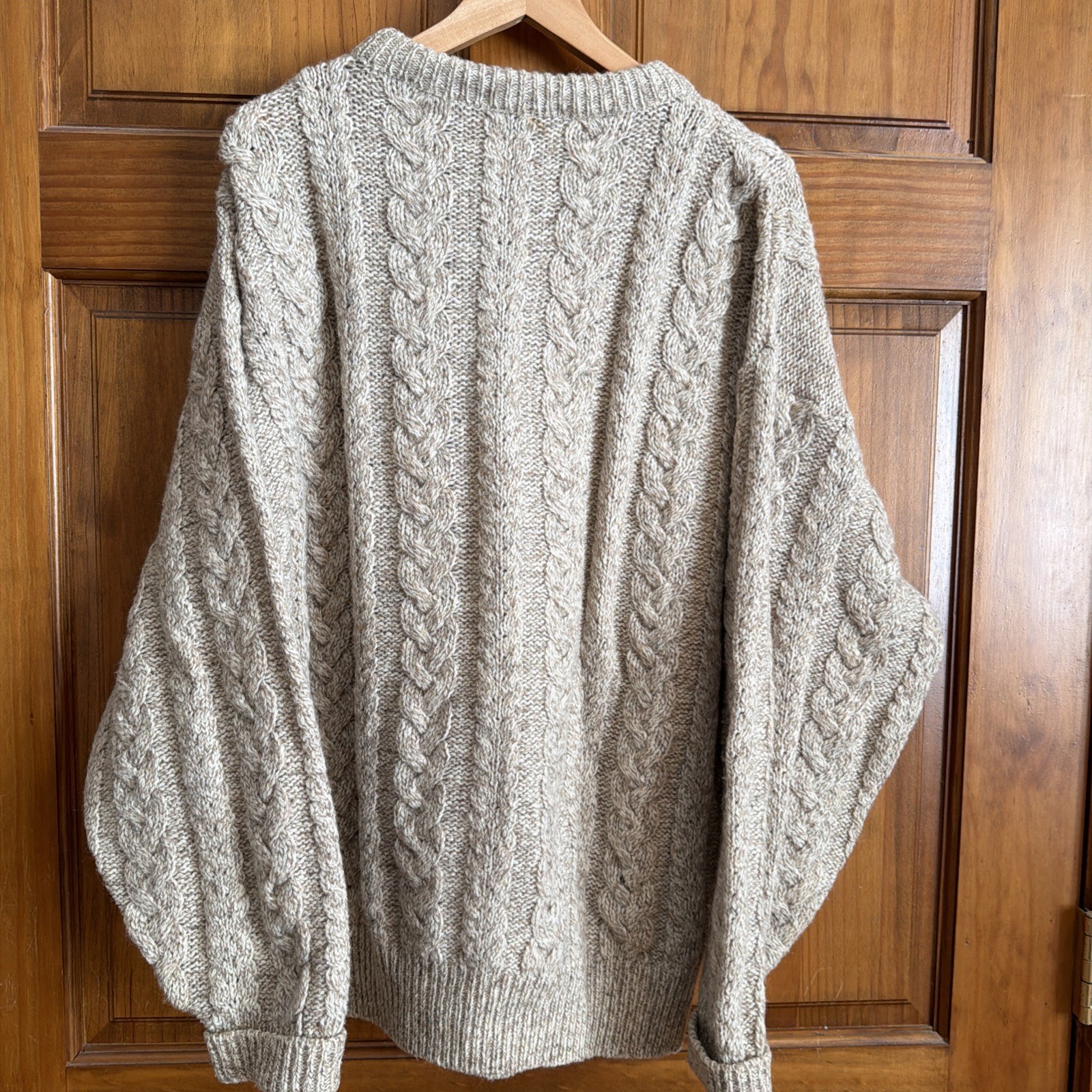 как выглядит Vintage Lord Jeff Sweater Men L Beige Cable Knit Wool Mountain Marls USA Fisher фото