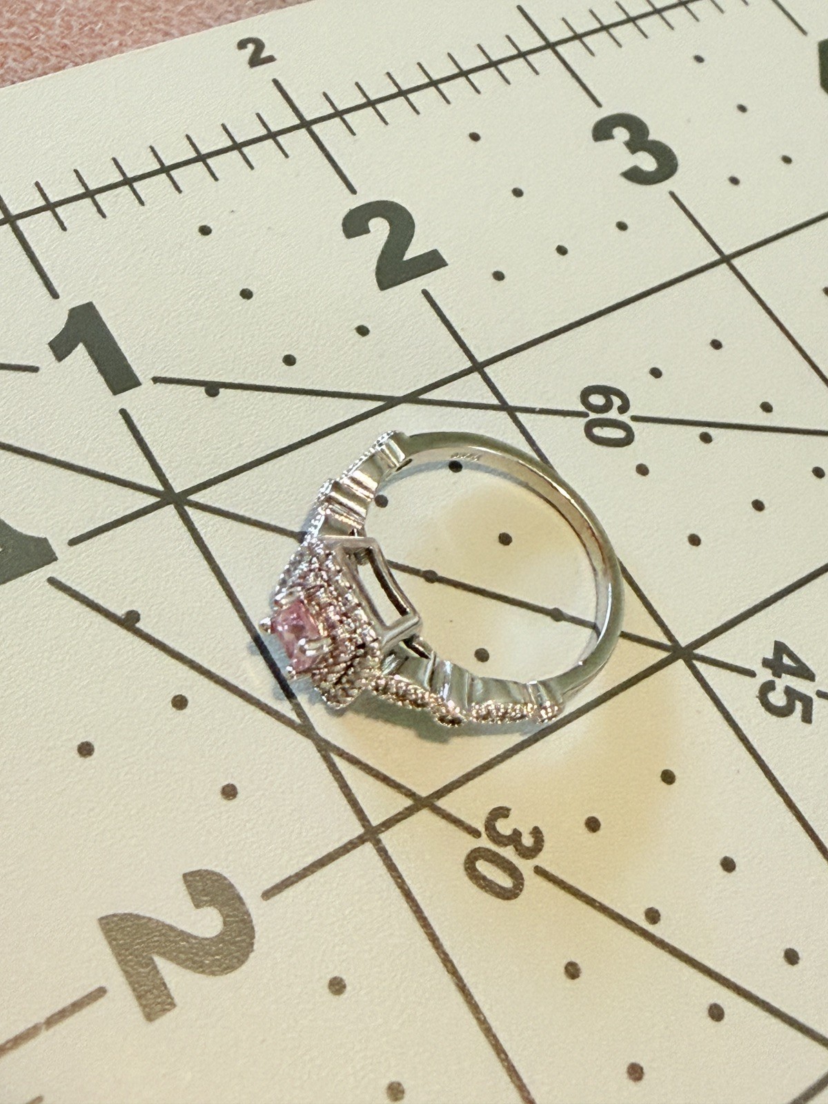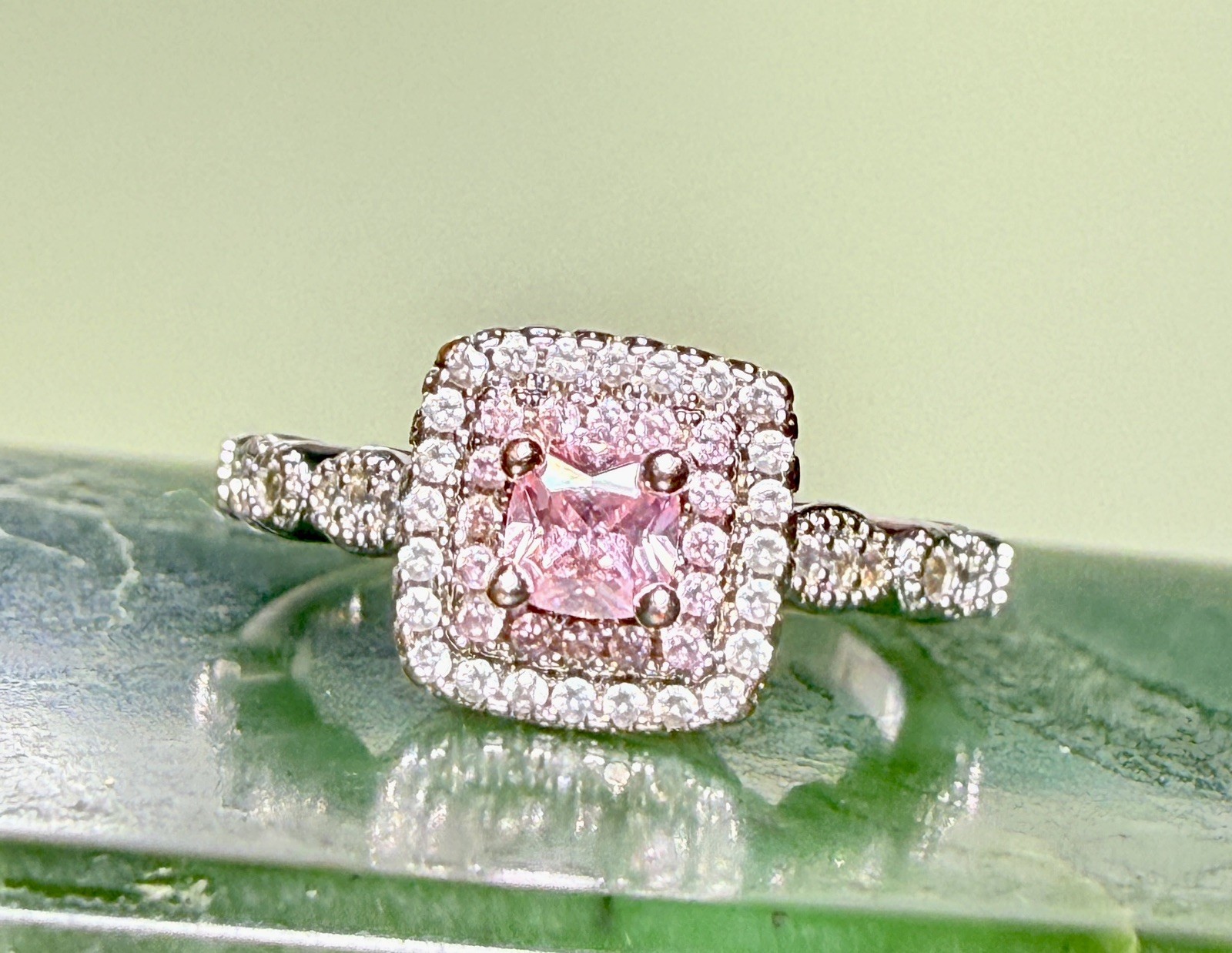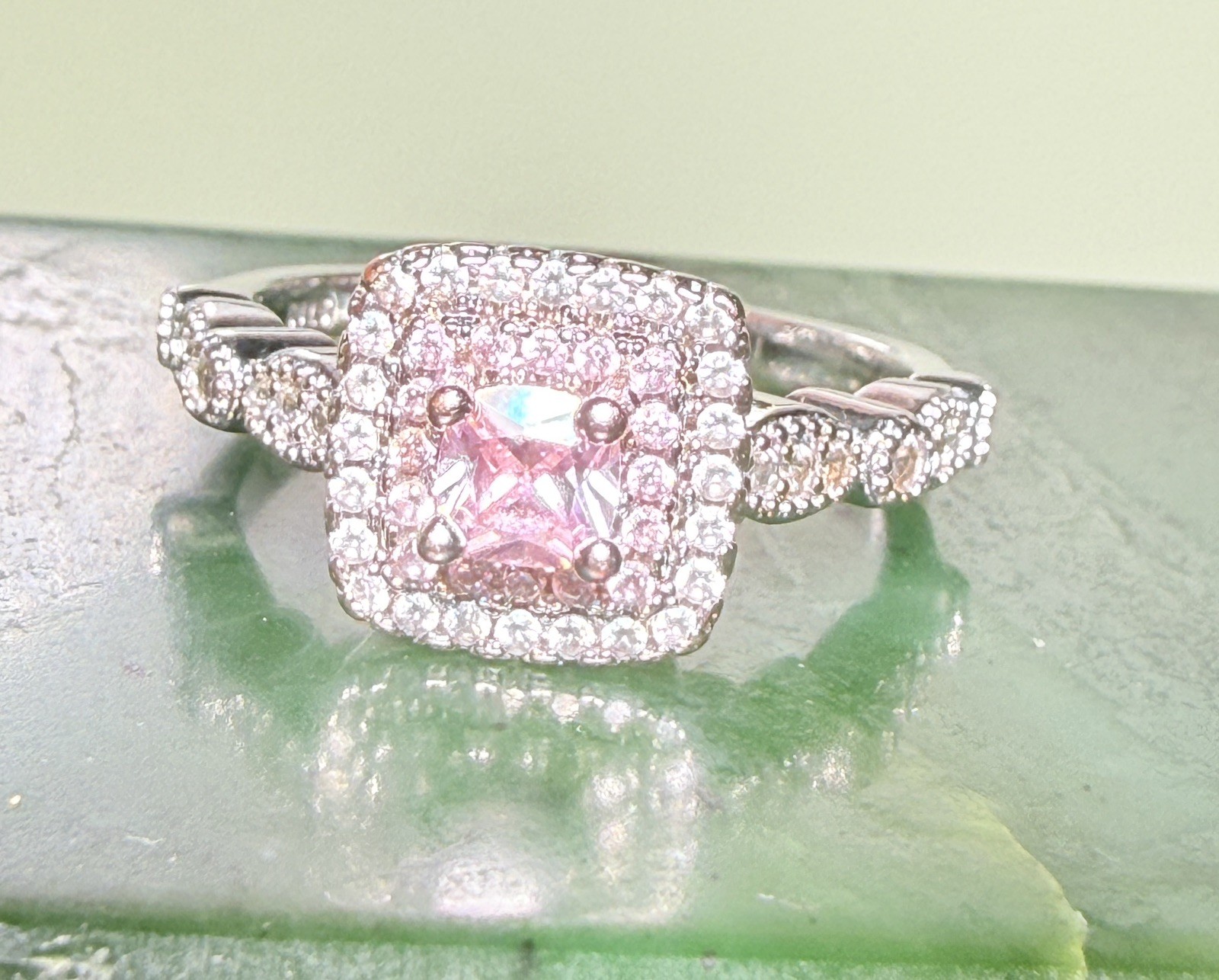 как выглядит R3 Solid 925 Sterling Silver Ring Pink Cubic Zirconia Square Cut Stone Size 7 фото